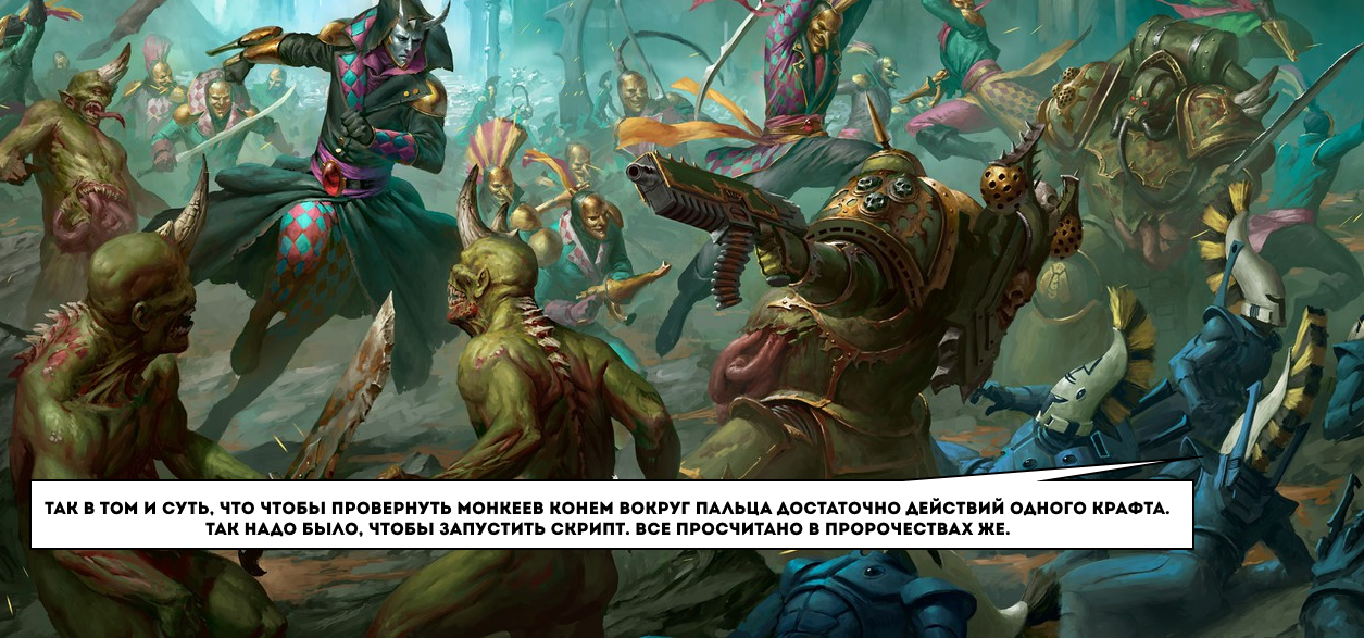>Нет, Империум ковался через необходимое Зло И теперь обречен сражаться с зеркалом, в котором отражается его кривая рожа. Отдан на поругание своим собственным порокам, которые обрели плоть в виде хаосни. А ИИ как летали так и летают, договоры как заключали так и заключают. На самом деле, весьма приятное зрелище. Неважно, во что пытается человек, все равно все тлен.