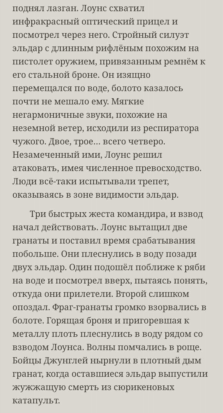 Как же они...кхм. Нет ничего хуже любителей ЧЕСТИ. ЭЛЬДАР НЕПРАВИЛЬНО ВОЮЮТ у них. Дегенераты. Быстрее бы их уже перерезали аспектники.