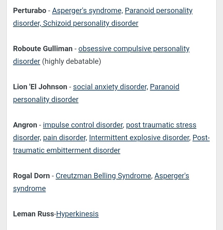 >>31922 Дорн.хотя его мазохизм показывает что обстановка была нездоровой Робаут. Русс. с одной стороны он дитя Маугли, но с другой о нем хоть заботились фулгрим да, планета не очень но у него была семья Ханего все таки приняли в семью хоть он и рано лишился отца Вулканприемный отец кузнец Возможно Магнус. Естественно, травмирующее детство было у мортариона, ангрона, Лиона, керза, пертурабо, ферруса. Опять же не в равной степени, у ангрона, керза и Морти сильнее, у ферруса и Перта слабее