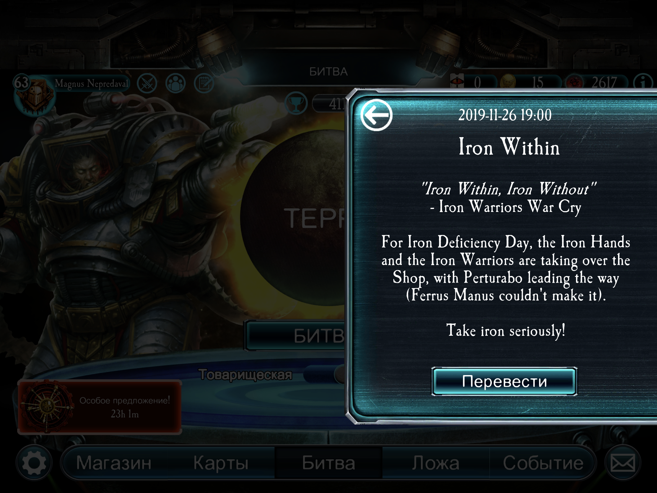 15. -Ебаный Талларн, ебаная пустыня, ебаная Альфа, ебаное все! Выслать еще войск! -Но это войска Воителя Хоруса! -Я ВЕЛИКИЙ ПЕРТУРАБО! ВЫСЛАТЬ ЕЩЕ!