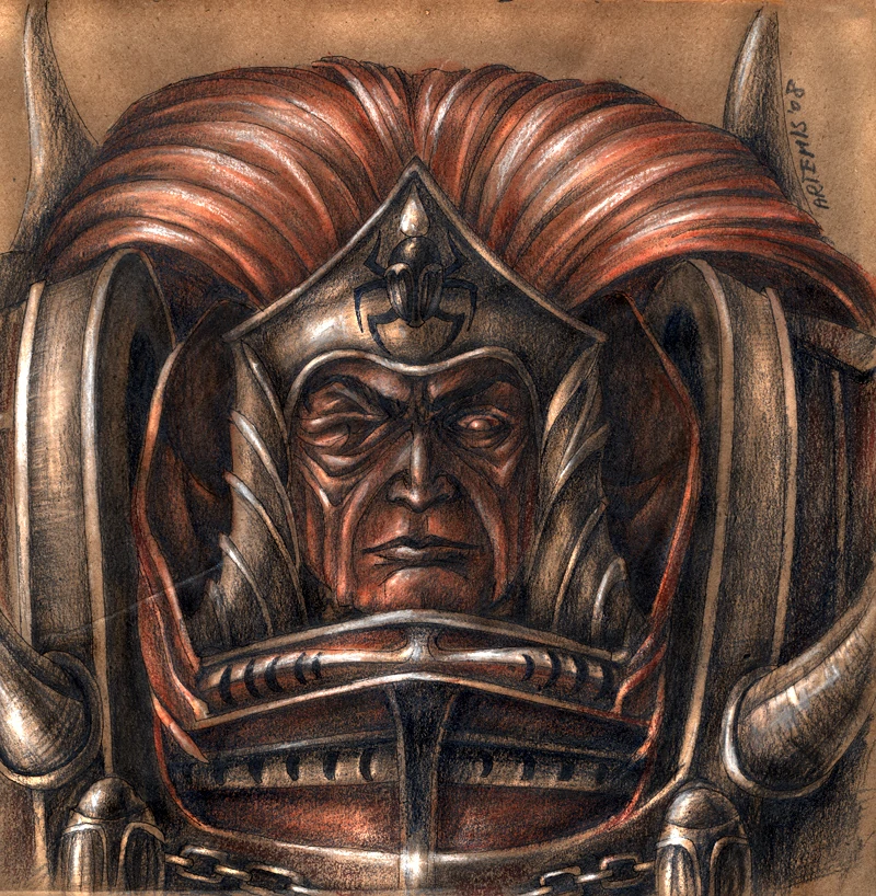"King Emp-Rar, of the village Terra. Powerful magician, made himself god."