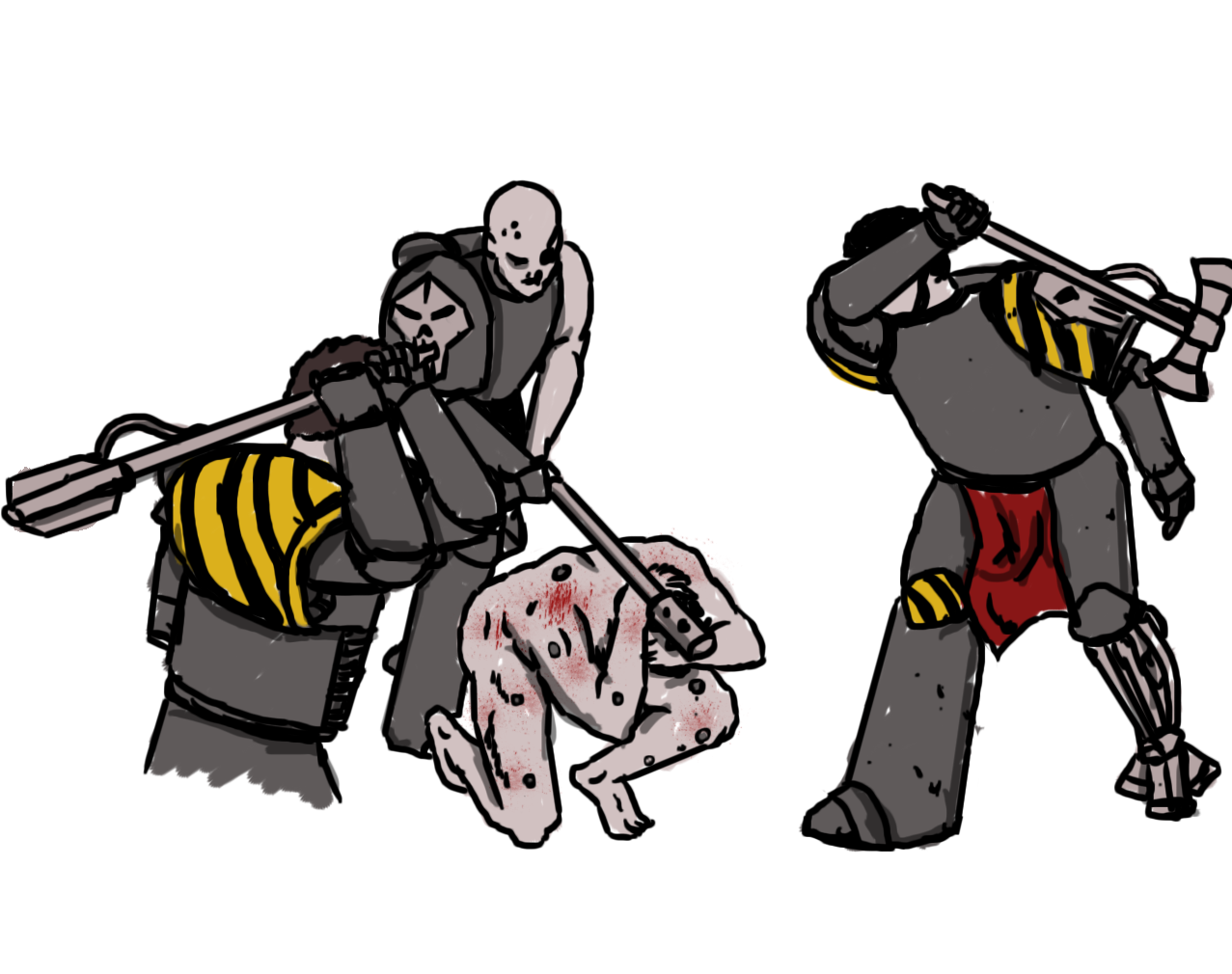>>133613 Удопалачам семя в голову даёт, они казнят всё что движется, себя не контролируют. Их короче активируют как эверсоров и пускают в нужном направлении. Работают поодиночке, два палача могут начать казнить друг друга. Для экстренной остановки палача в районе паха у него есть капсула с криогенными ядами. Геносемя у палача не извлекают, непригодное оно, сожжено крепчайшим семенем. Палач может почувствовать заблаговременно приход безумия по росту температуры в паховой зоне и навязчивым мыслям об Истваане V.
