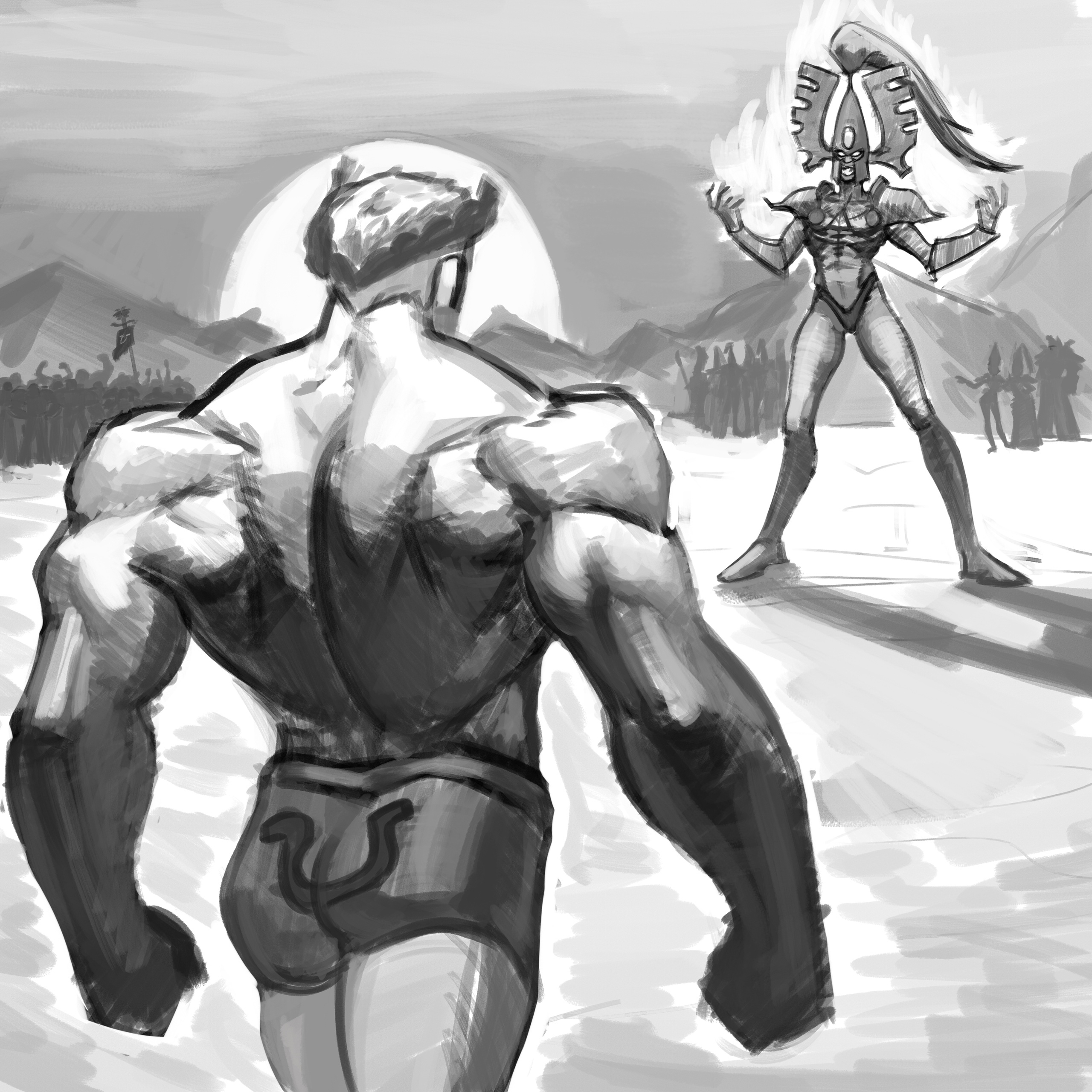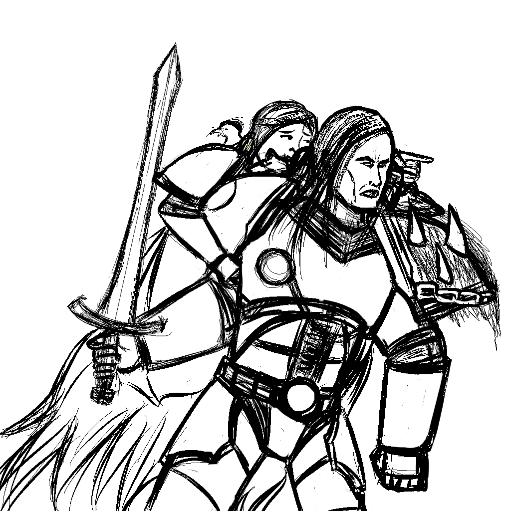 Можно под Дорна и Лоргара? Дорн по пояс голый и в штанах центуриона. Лоргар на фоне башни, презрительно оглядывает окрестности - не роется ли где-нибудь этот немытый ебанат.