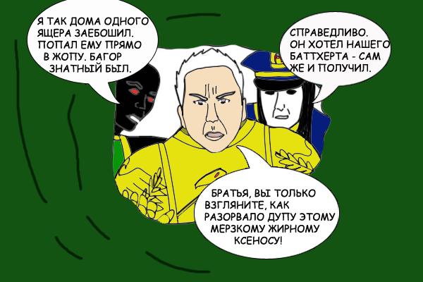 Реквестирую следующие пикты: Польские гусары из Крыла Ворона гонятся за хохлом-Астеляном в обосранных червонных шароварах. Ультрамарин показывает свою ЧЕСТЬ с кольцом в дупе, к которому цепочкой прицеплен шлем.