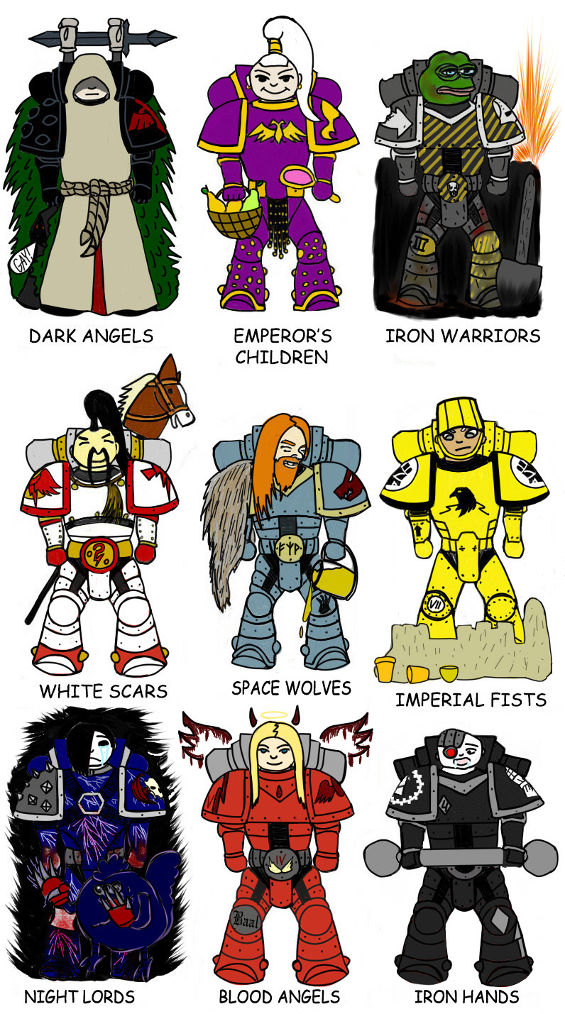 Ящитаю, должны быть эти пикты в одном из вариантов, причём который с императором - завершающий Кстати, ещё вариант для баннера - выбери себе бога Хаоса и прилепить МАКСИМАЛЬНО всратые арты хаоситов. А ещё мне хочется где-то влепить надпись про новые ценности, но не поймут. Или поймут?