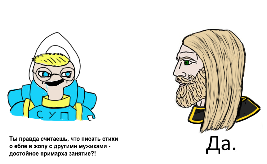 >>35152 У Императора их карими рисуют, если рисуют именно цвет, а не пси-свечение. Как? В этой проге - никак. У самих же псайкеров глаза бывают какими угодно. >>35156 >ни разу не улыбающийся, готовый на всё ради своей Великой Идеи "правильный сын" Это и есть дорнит, архетипичный. Когда такие люди доходят до крайности - из них получается >абсолютная чёрствость и идеализм в худшем lawfull good-плане Потому что Драйзеры, которых среди Кулаков, ТА, Серых и пуристов-инквизиторов овердохуя, именно такие и есть, и чем больше они заморачиваются на долге и идеалах, тем больше вероятность, что из них получится ЧХ или ебнутый на всю голову капеллан-дознаватель. Дорн даже выглядит как маскот этого типа - седой сероглазый мужик с мрачной рожей, почему-то среди Драев таких людей и по жизни много. И они охуительны А еще они дрочат на справедливость/покаяние/и все прочее в таком духе и ради этого не пожалеют ни своей те еще любители поебать себе мозги, залезть в перчатку боли и на бутылку раскаяния жизни, ни чужой. Злой Драй отвесит таких пиздюлей всяким иволам, что те охуеют. А вот это >улыбающийся сладкожопый мальчуган Фуля или Саня. >>35160 Я на Попобаву и подумал. На сайте выше есть редакторы посильнее >>34526.
