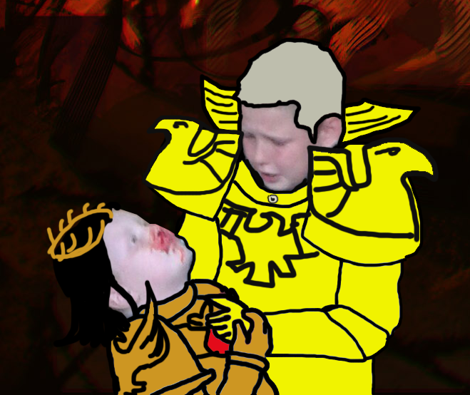 >>11286 Справа Лев, в праведной ярости заносит меч Слева Лютер, пал на колени и лобызает примарха (раскаялся) в следующий миг Лев поймёт, что не в силах убить друга возлюбленного, а Лютера опять торкнет Хаосом ну и Лев повержен