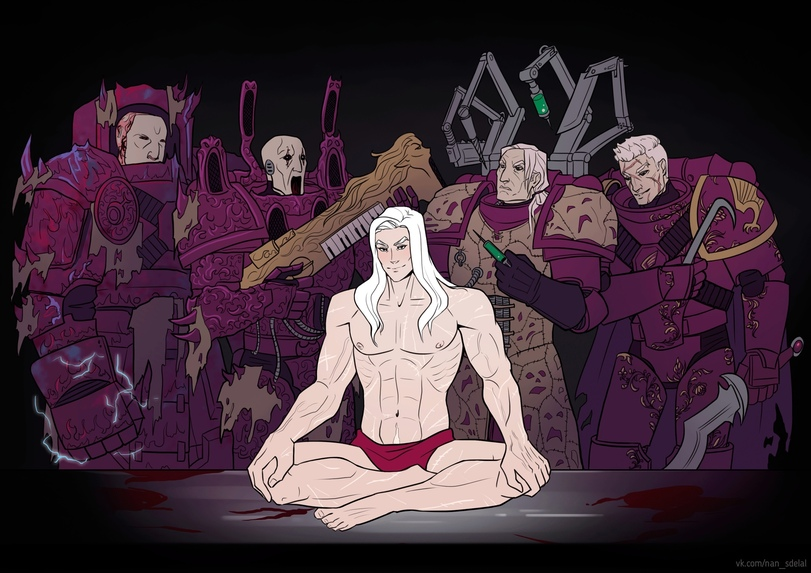Идеи примерно такие: Хренд, гачи-дарки, поэмы Льва, сахарные эльдар под ручку с Серыми, продавцы топоров, нипридавал, Уд Раскиян, Ариман Сладостный, а дальше сами думайте.