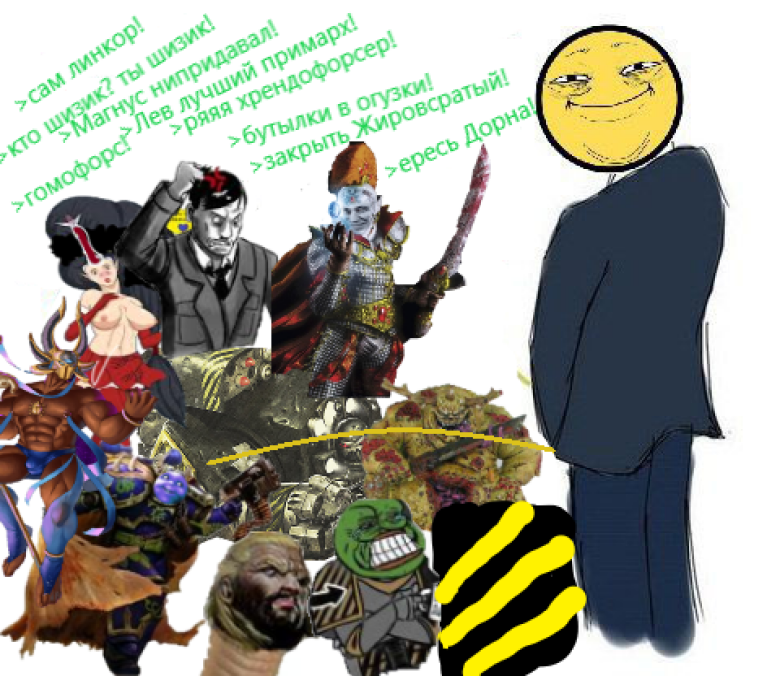 >Империум на грани катастрофы >все планы проваливаются, орочьи послы уже на Терре >ничего не помогает >в руководстве одни кретины кроме Вангорича >мудрый и дальновидный Эльдрад посылает арлекинов >двадцать эльдар погибает для ритуала транспортировки >арлекины прыгают на Терру и режут всех по пути во Дворец с воплями "Дружба! Дружба!" >последнюю скручивают кусты >инквизиция готова выслушать ПОСЛАНИЕ >НУ ВЫ ТАМ ЭТО, МОНКЕИ, ХАОС БЕЙТЕ. ДА. ХАОС. ЧТОБЫ ПОБИТ БЫЛ. ДАВАЙТЕ ТАМ, А. МЫ СЛЕДИМ ЗА ВАМИ