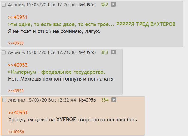 >>41879 Вот не надо мне Хренда приписывать. В пиздецы меня иногда заносит, каюсь, грешен. Иногда. Потому что жировсратый стал тухнуть и надо поддерживать хоть какую-то беседу, но не засерание "пук хрюк среньк". Куколдунов тут точно не один. >>41877 >>41878 Не советую целенаправленно злить ВС, даже если они вам не нравятся. Пиздюлей получите если не от них самих, так от их агентов.