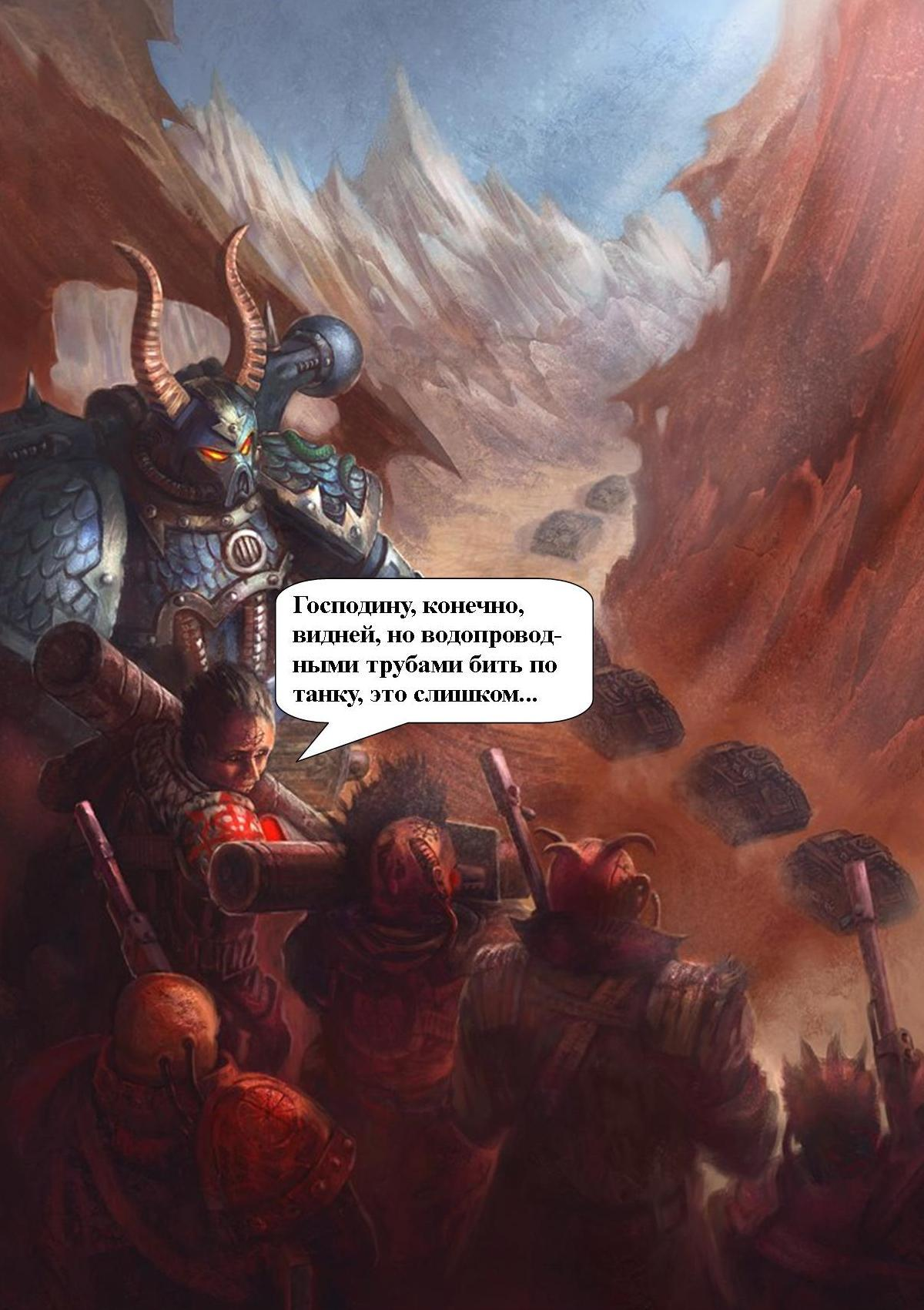 Рассказчик Опущены стяги, легион и примарх Рыдают, зарывшись в окоп. В дыме седалищ кровавый закат, Висит над Олимпией смог. Ты не можешь поверить обидным словам, И странным все кажется сном: Олимпийцы проводят тебе по губам Шершавым немытым удом. Жители Олимпии "Нам не нужен Империум, не нужен Отец, И сам ты - унылый лягух! Убирайся отсюда, хуев Пепе, Ты не примарх, а петух! Нужен нам наш привычный уклад, Ебали имперцев мы в рот! Бороться будем мы до конца, Иначе мир наш умрет!". Рассказчик Пеплом осыпано примарха чело, Разрушен в прах идеал: Пертурабо "Как так случилось - мой преданный дом Против меня же восстал?" Рассказчик И гложет обида, словно змея, Тьма, что свернулась внутри: Пертурабо "Нет, примарх быть не должен бомжом, Другой дом я должен найти". Хорус О мой бедный братишка, я знаю ответ, я укажу тебе путь - Император не ценит? Твой мир послал? Шли же сам их на уд! Шли и иди под знамена мои, прощенье я дам взамен. О Пертурабо, сделай же шаг! Время пришло перемен. Темные Боги из очка ужаса Суть мироздания откроем тебе. Познаешь ты истины свет Величие Хаоса подарим тебе. Примарх, мы ждем твой ответ Рассказчик Сердце лягухи покрылось броней, Скрывая от всех жуткий шрам. Пертурабо "О Император, ты хочешь войны? Что ж, я тебе ее дам..."
