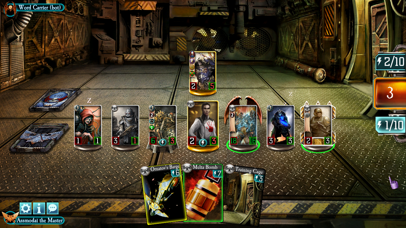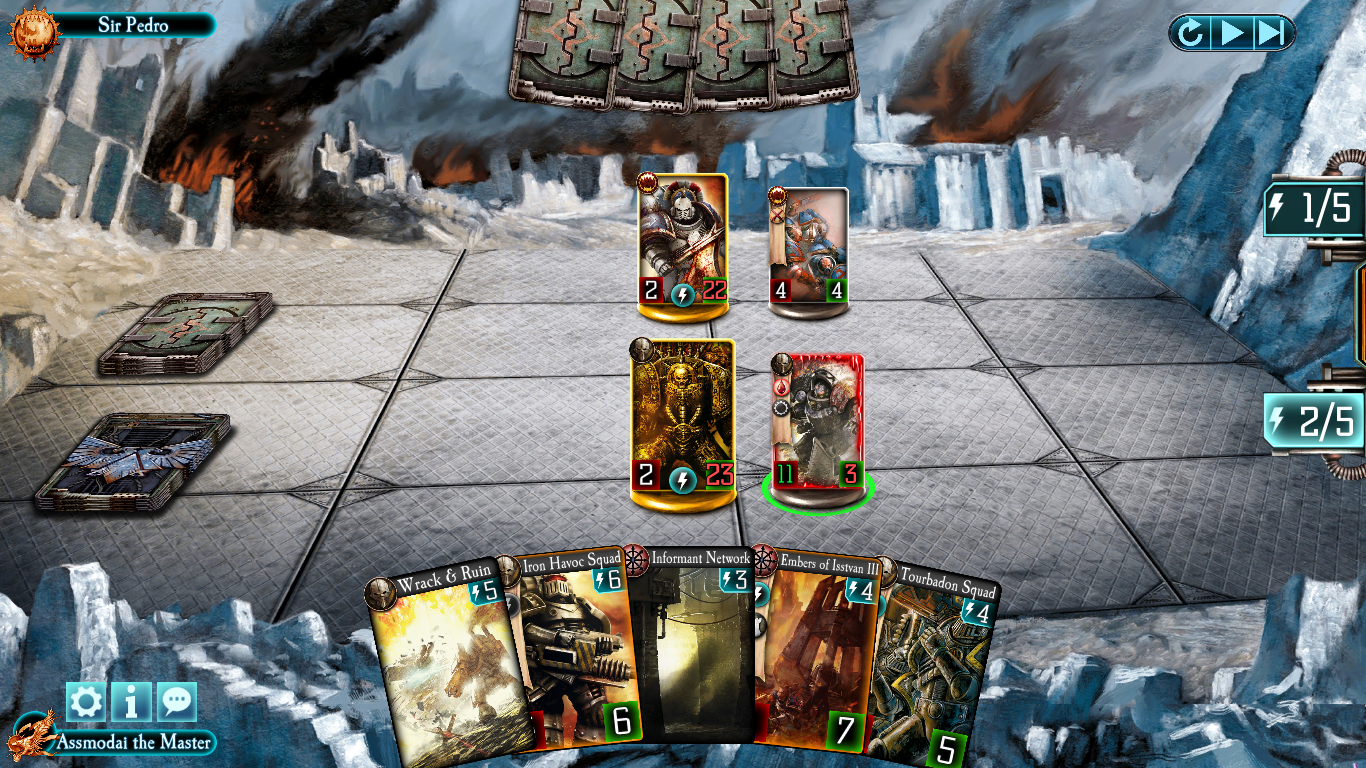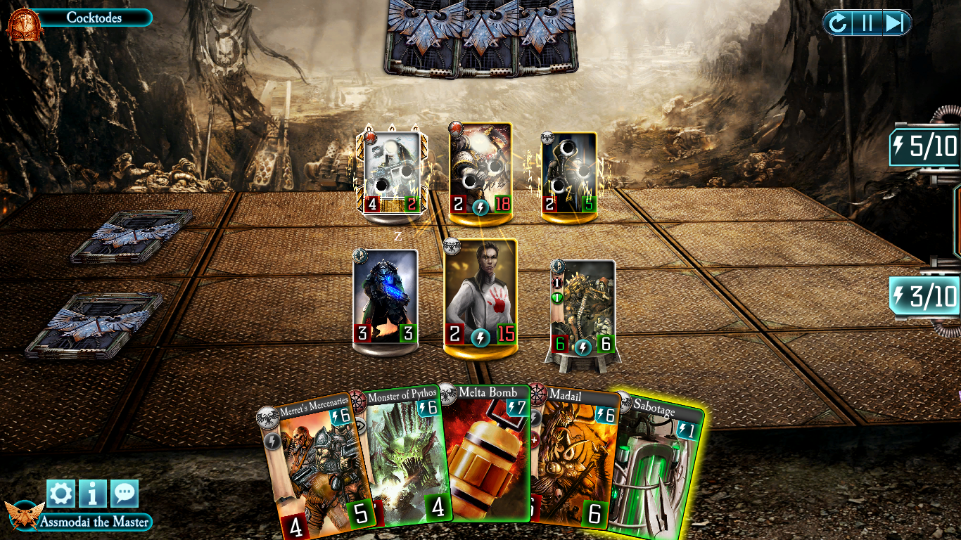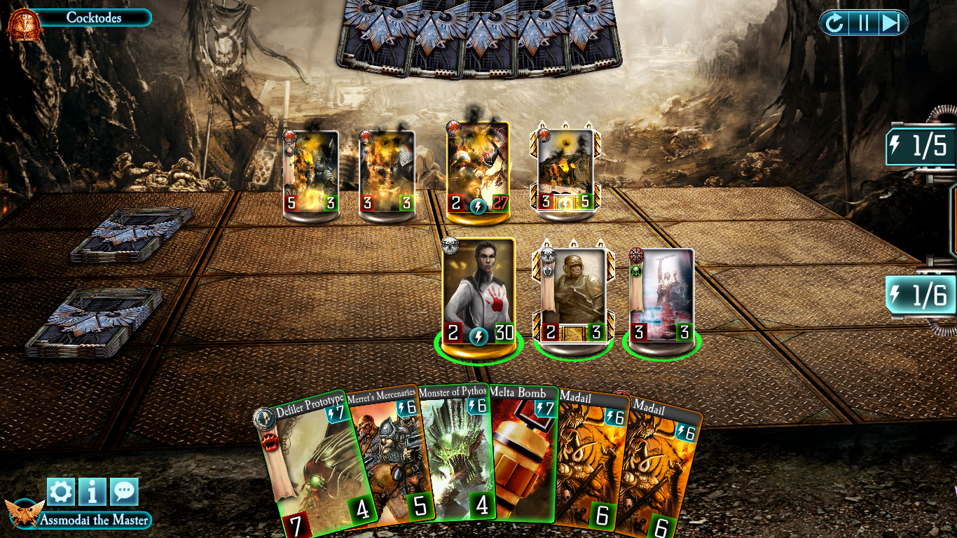 >У них есть прекрасная карта - стражи, но они и так в стелсе. А умбру кидают в связке с мор дейтаном на столе, чтобы 1+1, 6+1 и 6+1 кинуть. Но это до завоевателя отыгрывается. И умбра с морадусами или даже двумя в руке, и мор дейтан на столе, это супер-заход какой-то, ну или вагон промотанной колоды, что с Ангроном можно и не успеть. Суть в том, что Ангрону еще надо чистить стол противника, не чистит - ну что ж, дело их, я таких жабами убивал к 7 ходу. Вот ставит ворон 3/5, который приговор кидает - и что, игнорировать его? Нет, конечно, надо убить, но вулканы не осилят, да и стоит ли отдавать вулканы на одну цель да еще не в стелсе? Рывки тоже жалко, да и везде надо лицом добивать. В итоге ты выбрал Вулканы, Коракс потерял 3 хп и одну тушку, а ты 6 хп, если и дальше так пойдет - ворон вполне способен будет на летал из руки наскрести.