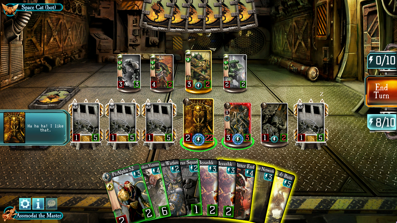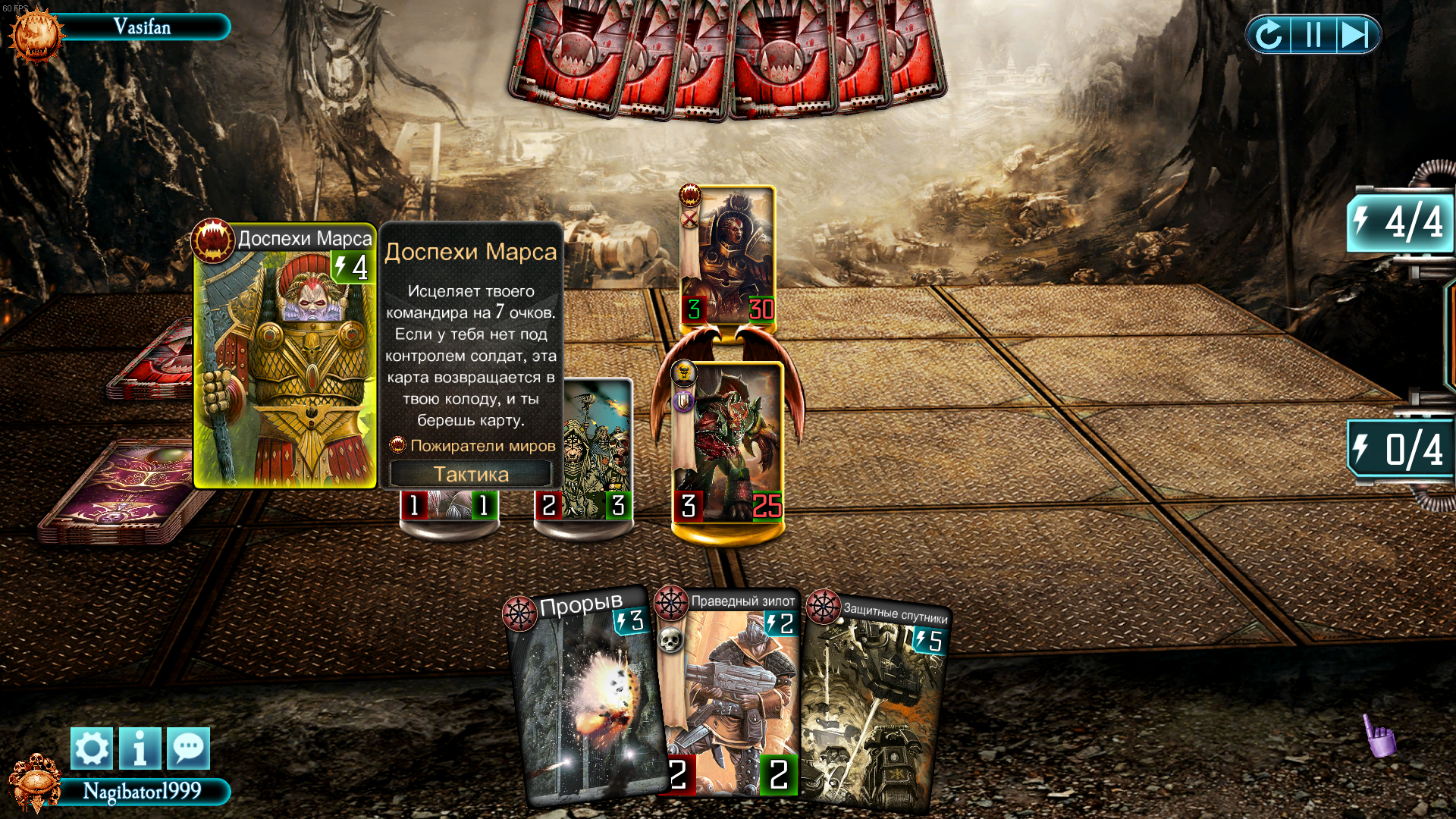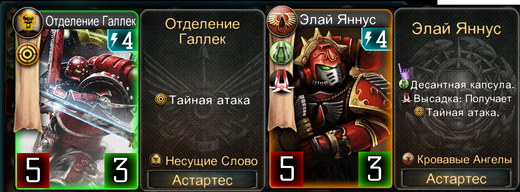 Вообще говоря о бладах - им чота дохуя спец фич накидали, и карт пиздатых. Дешёвые антистелсы тактика за 3 энергии, но лучше, чем у еретиков тем, что накидывает тебе столько карт, сколько врагов проебало стелс, дешёвые 3 и 4 урона в любое ебало, дешёвый же фланг для всех астартес сука, вот нахуя мне за ночников карта на фланг для вообще всех ребят в руке? Я чё по их мнению дохуя пехтуры с собой ношу?, да и тактика на ХП дропподов. Пиздец они шибко душными вышли, я думал там фан юудет, а всё как всегда.