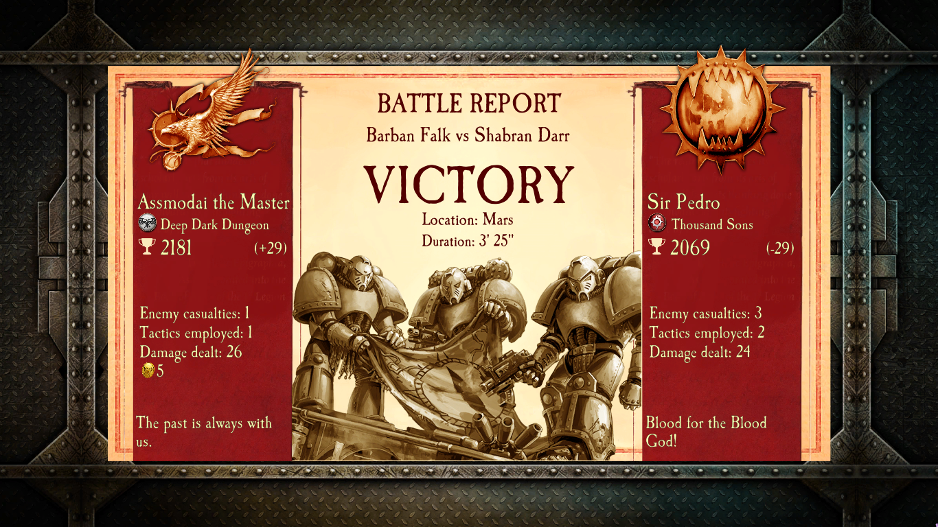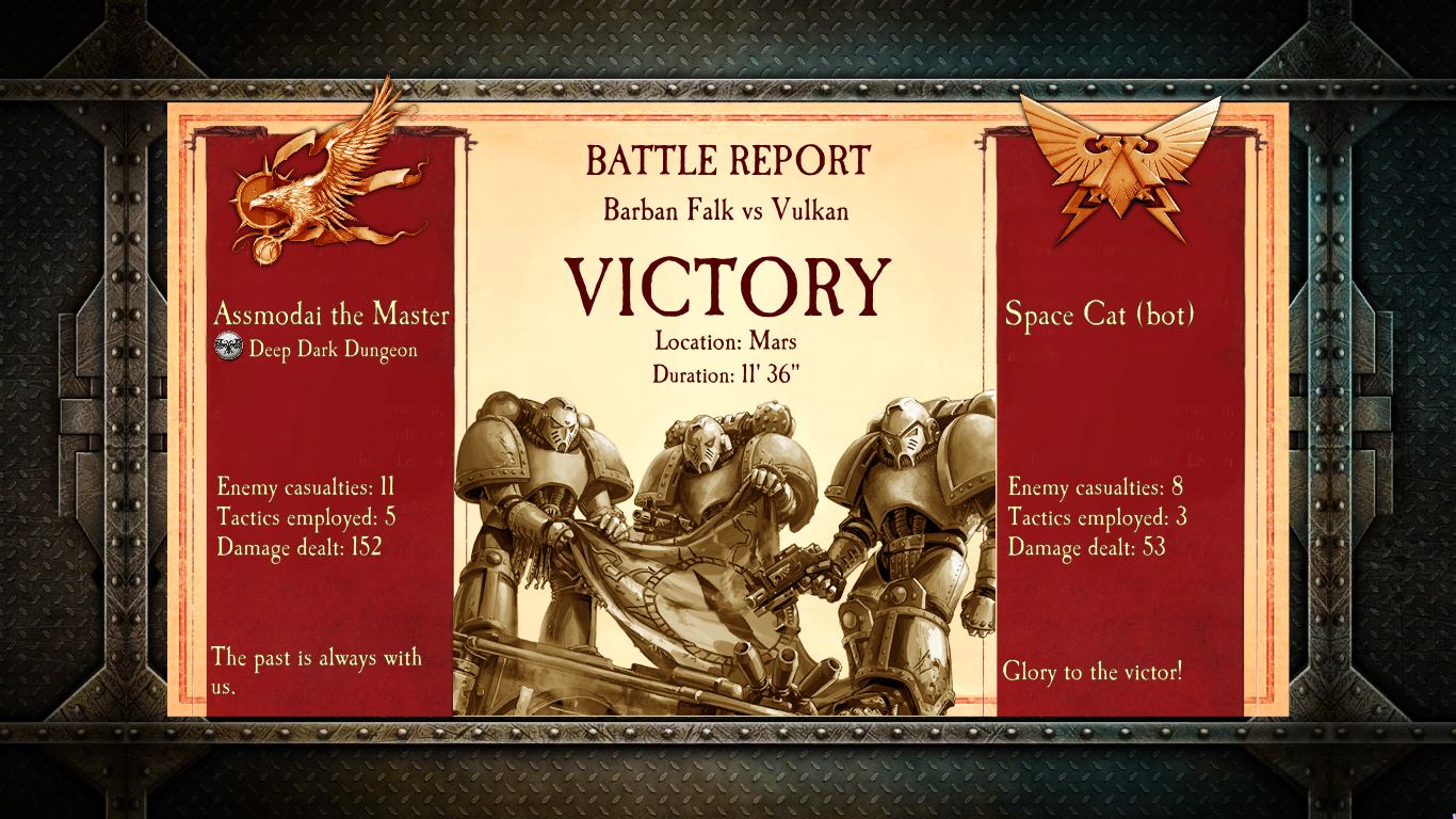 В этом треде мы: Ищем подкрутку в The Horus Heresy: Legions Ловим мельту в упор и выстрел с лазпушки через всю карту в Warhammer 40000 Space Marine Проносим мимо Ордо Ксенос технологии некронов в Warhammer 40,000: Mechanicus Наблюдаем за аэродинамикой юнитов в Total War: Warhammer II Давим скавенов в Warhammer: Vermintide II Не понимаем, откуда у противника в начале боя столько улучшенных отрядов в Dawn of War (и его дополнениях) Прожимаем X чтобы отступить в Dawn of War: Retribution (И Elite Mod) Спамим нова пушками в Battlefleet Gothic: Armada II Сжигаем еретиков в Warhammer 40,000: Inquisitor - Martyr Умираем от дружественных мили ударов в Space Hulk: Deathwing И наслаждаемся миром далёкого будущего, где есть только война в других играх.