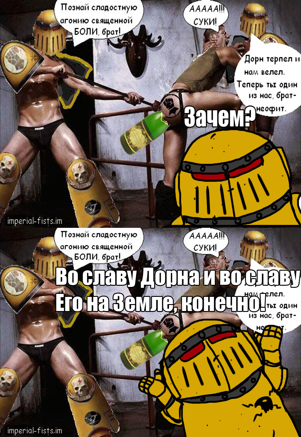 >>47432 Его даже лорик попустил. Блядь, да что там говорить, его даже собственные сыновья на этой теме попускали. Даже такой уебок как хайон у которого уд абаддона так глубоко сидит что аж из глотки головку видно признает что император то блядь прав был во всем. Только метаться уже поздно когда товарищи во всю силушку варпову черпают.