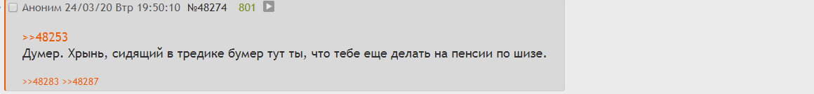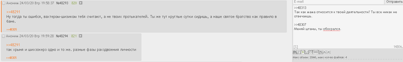 >>48331 Это все объясняет, на самом деле. Вахтер, которому жить от чужой свободы и старой команды, тошно, потому он и лопнул, и его ручной кабанчик Хрыня, который всегда подскочит и засрет тупостью и мелкобуквой. Одну доску они уже отмодерили, теперь сюда приперлись, не хочется у себя сычами сидеть.