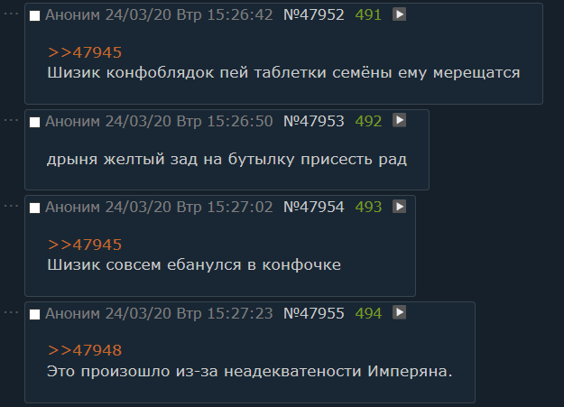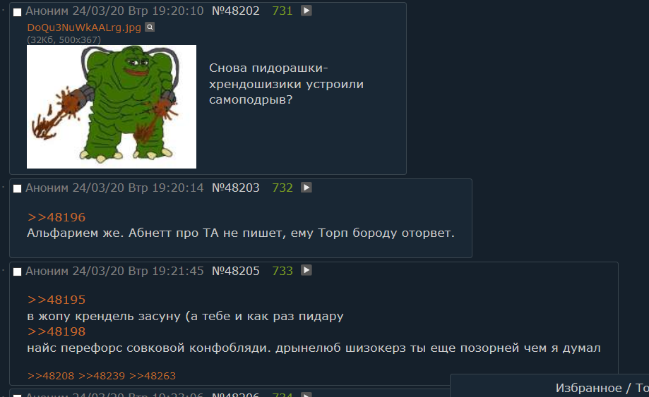 >>47687 >Через сколько ты опустишься до лахты под кроватью, которая обсерает Пепе и Магнуса и ищет Хренда за доширак? >Мда, хрендошизики ещё и типичные крымопидорашки Из его поцта видно что он уже это сделал.