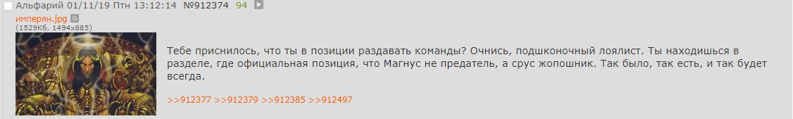 Стоп, поясните в чем смысл жаловаться на хрендов постоянно детектить любого анонима в постах, где затрагивается Магнус и Пертурабо, если эти даунята из б сами срут больше его, не пишут ни одного поста по теме, и не могут вообще ничего привнести в тред здравого? Чего они добиваются? Ведь обсуждать Магнуса и Пертурабо не прекратят, они главные персонажи вахи.