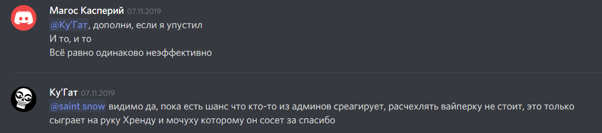 >>50923 >А Батя хотя бы ПЫТАЛСЯ выглядеть не как рабовладелец? Бате некогда, Батя работает. >Корваксовы дружки что-то на эту тему тоже бухтели- им гвозди тоже повбивали? И Коракс сказал - "Кто-то должен страдать. Пусть это будете вы".