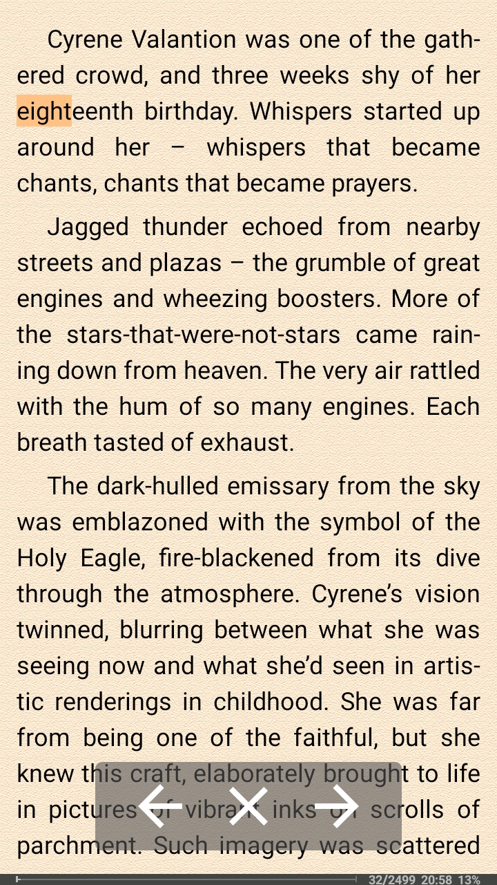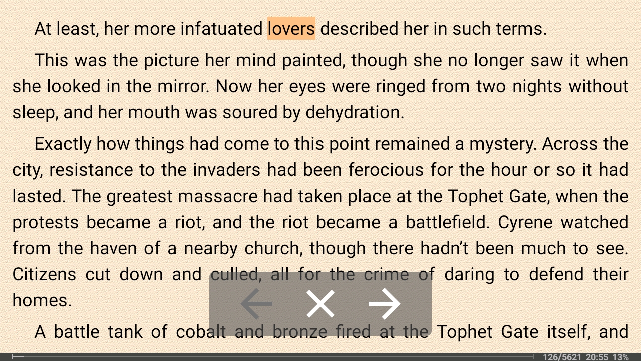 The Blessed Lady really needed to put some clothes on. She reached blindly over the edge of her bed, her hand patting the floor, questing until she found her robe. Cyrene was slipping the garment over her head when she felt Arric’s arms encircling her from behind. ‘It’s still early,’ he said, breathing the words against her neck. ‘Actually, I think you’re already late. That wasn’t the dawn chime, it was the signal for noon.’ ‘Don’t joke,’ he said, pulling her closer. ‘I’m not joking.’ Cyrene ran her fingers through her hair, ignoring his as they quested over her. ‘Arric,’ she said, ‘I’m really not joking.’ He rolled out of bed with an ‘Oh, shit...’ before repeating the curse a number of times, in various languages. Being in love with an officer could, at times, be an educational experience – especially ones that could swear in eighteen Gothic dialects. ‘Shit,’ he finished the tirade back where he started. ‘I have to go. Where the hell is my sabre?’