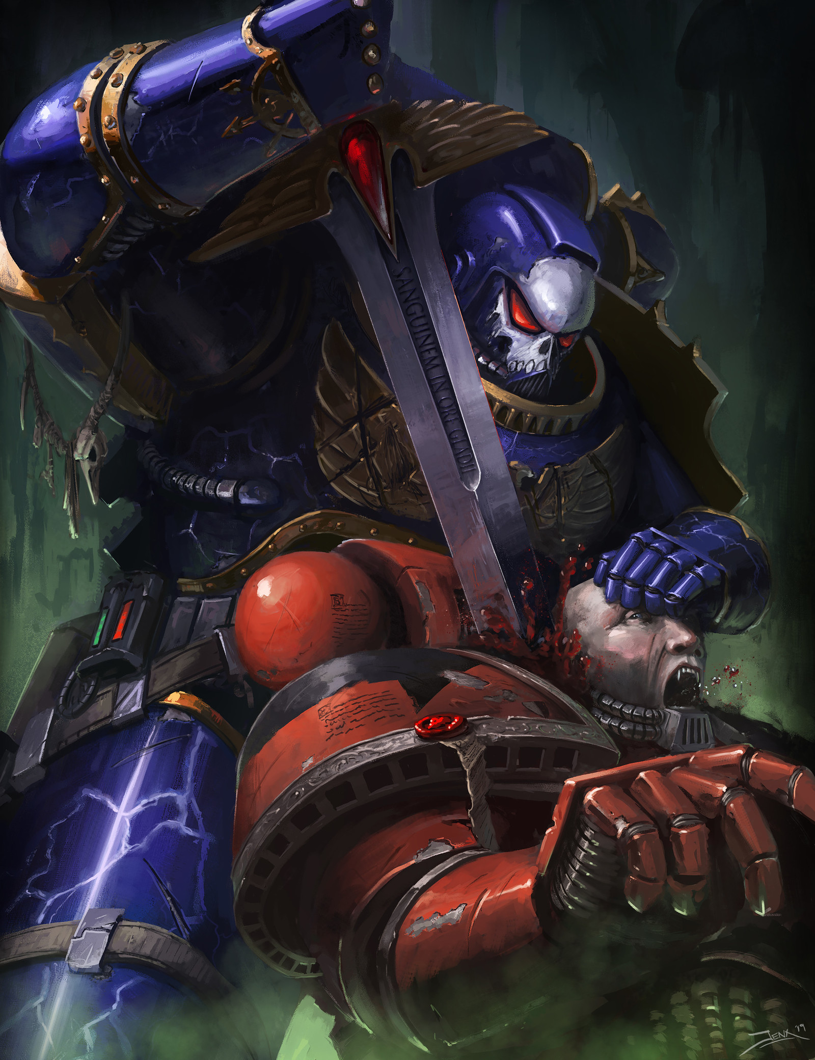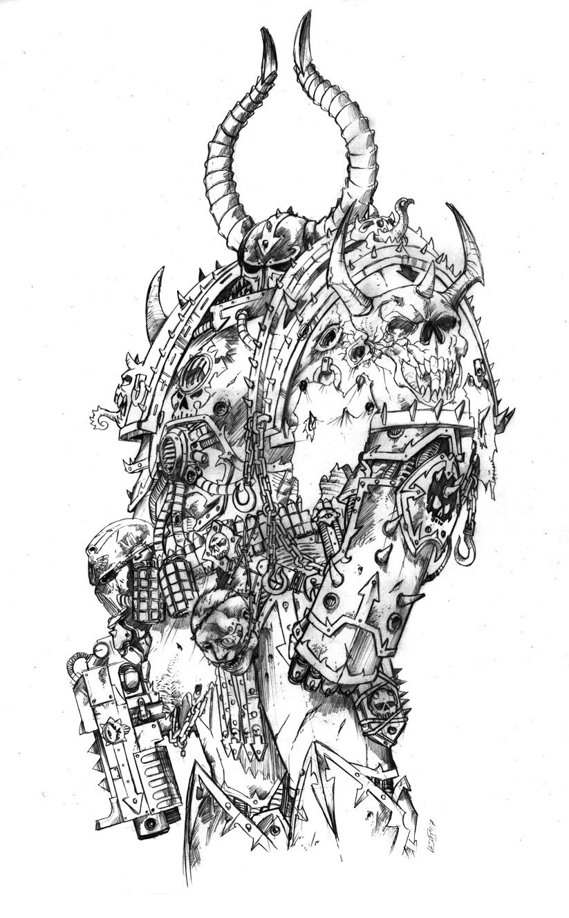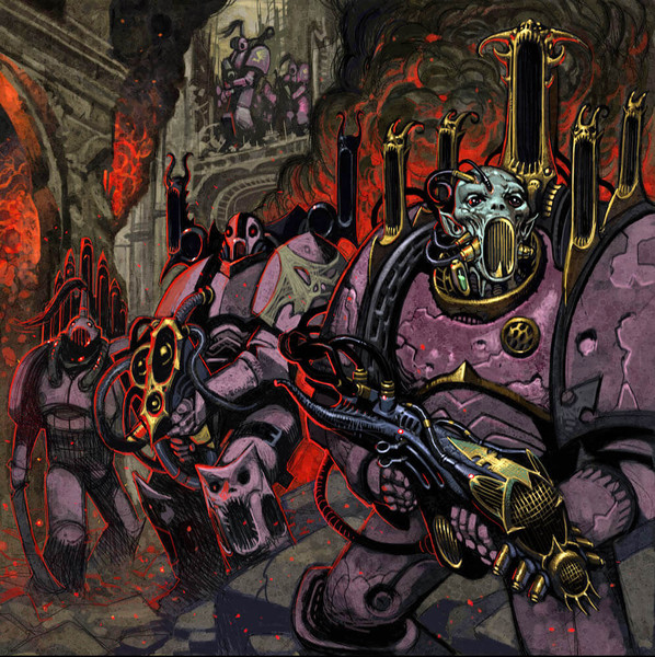 Повелитель Ночи умолк, а его глаза сузились, когда он увидел появляющиеся возле Лоргара фигуры. Их броня состояла из алого керамита и костяных наростов. Звериные лапы заканчивались огромными когтями, оружием одновременно из металла и плоти. Каждый шлем венчали рога. Каждое забрало было раздвинуто в похожей на череп демонической гримасе. - Ты не просто отвратителен, - Керз отвернулся. - Ты весь прогнил от скверны.
