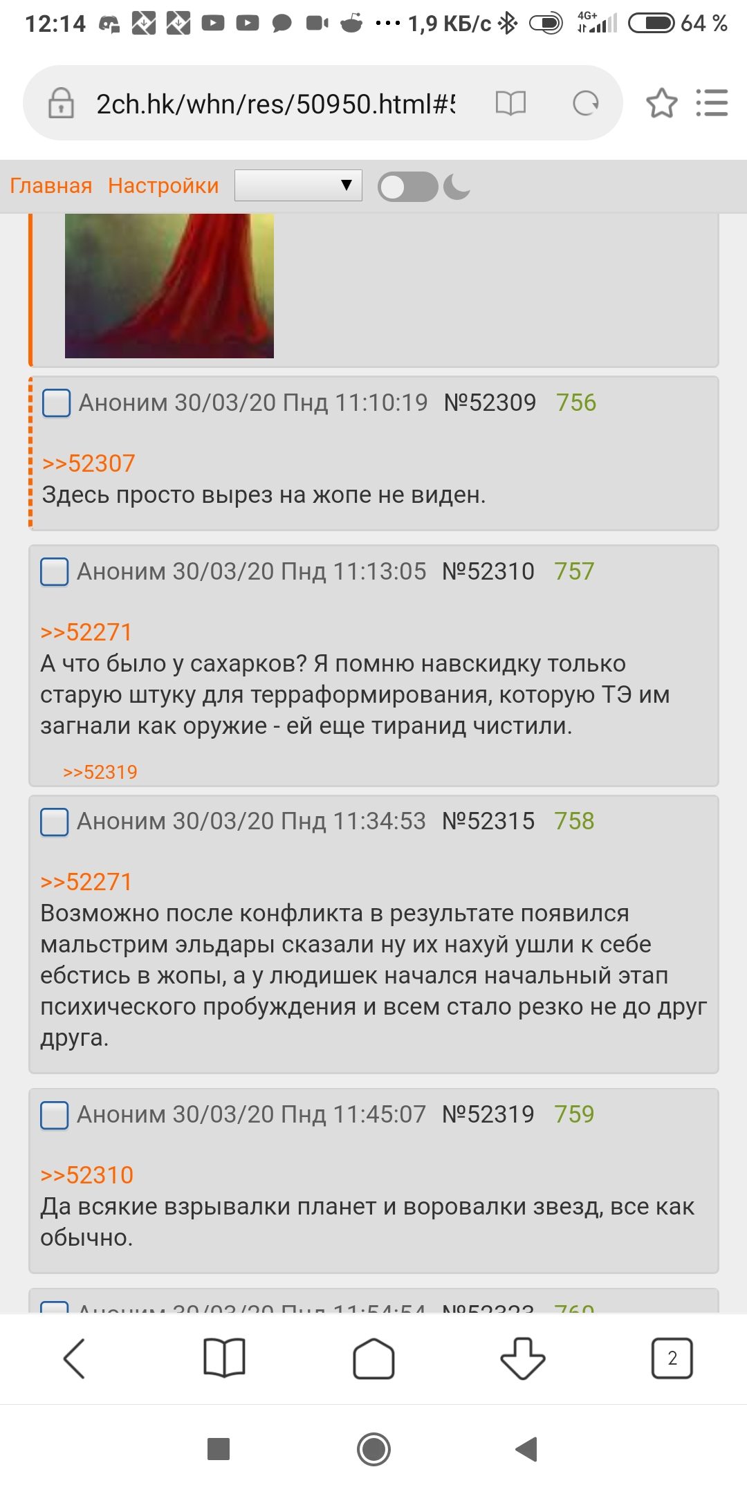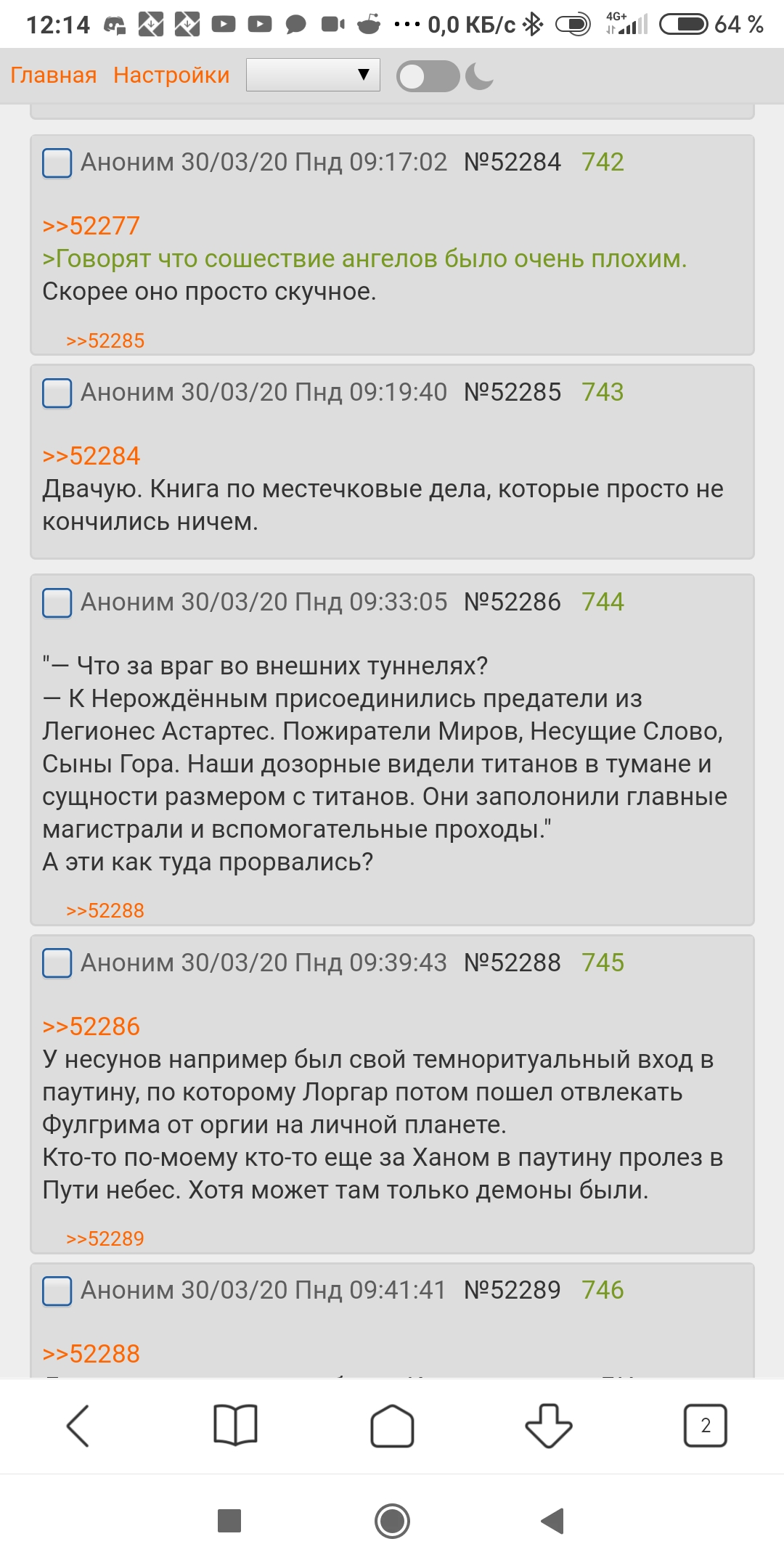 >>79366 Я виноват, так виноват! Но пожалуйста, брат, не требуй от меня невозможного. Я слышу дыхание варпа и не прекращу "обмазываться" им. У всего есть цена, да. Я стал нестабилен, и в этом ты прав. Но отказаться от варпа?! Никогда!