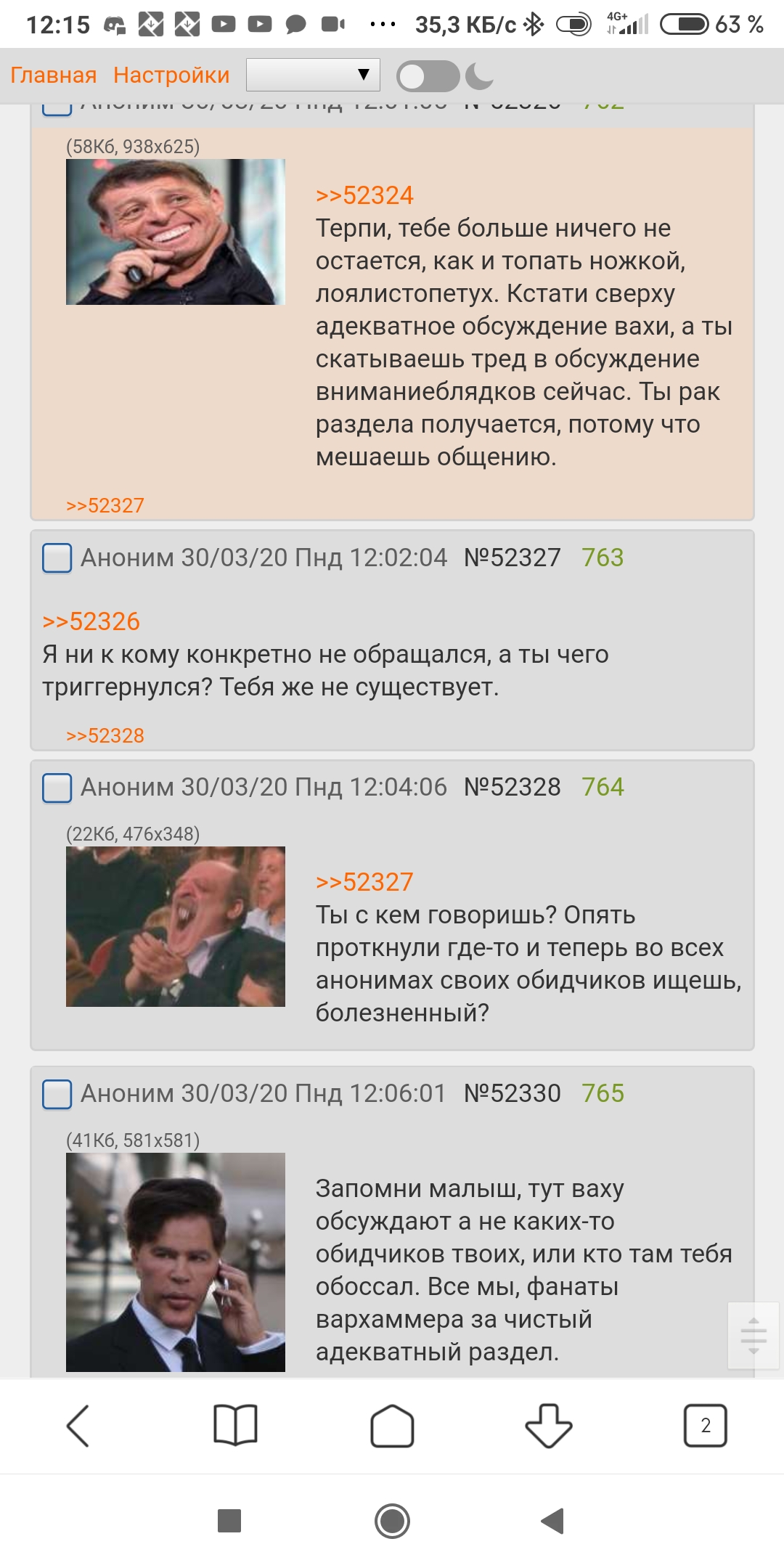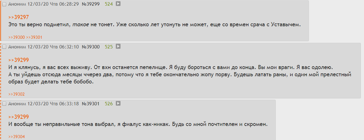 Что, опять будешь утверждать, что твоя троица святая, а разделу мешают все, кроме них? Вон на скринах видно, как до жабы все потихоньку обсуждают ваху на все темы, а потом она влетает в тред и начинает засирать его нирилейтед картинками и текстами из блокнота аки зв-вайпер. Не отвечайте ему, кстати, посмотрим дальше, что будет. >>52335 Он там сначала утверждал, что в прикреплённом треде 30 постов от гомотройки, потом - что всего 30 постов на всю доску, что вычитанием даёт 0 постов от гомотройки в жировсратом. А ещё якобы в двух тредах было всего два IP, причём один из них мой (при том что внизу треда было 40 постеров, а я с телефона в больнице напостить тысячу постов не могу физически)