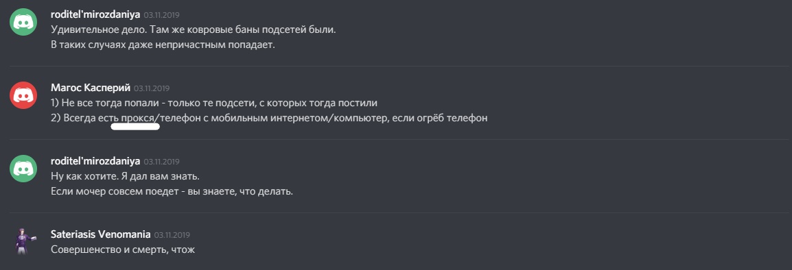 Еще разок для профилактики. Очень неудобные скриншоты для конфоговна. Хотя что взять с тех, если у кого нормальные аноны обсуждающие ваху это враги, которым надо мешать, а они, собирающиеся в конфочке, обсуждающие как вайпать раздел, координирующие набеги и вредящие треду это "нормальные люди". Манямирок больных as is. Надеюсь все адекватные люди, которые хотят обсуждать ваху и которым небезразлична судьба раздела увидят это.