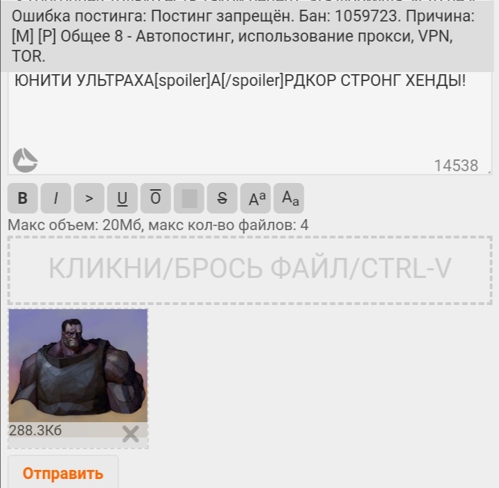 >>52507 Читал, и своей вины в постинге хуев не отрицаю, но любое терпение имеет предел, и после достижения предела может рвануть. Об этом и сказал. И заметь, этот постинг пары-тройки всратых картинок - не вопли "явасуничтожу, сраки всем порву и завайпаю все нахуй", как визжали некоторые. Делать мне больше нечего. С ареной идея хорошая, но недоработанная. >Вот вам например вброс и провокация. Сложно пройти мимо. Очень. Сверхчеловеческие усилия. Это такие тренировки по силе воли нихилачеров?