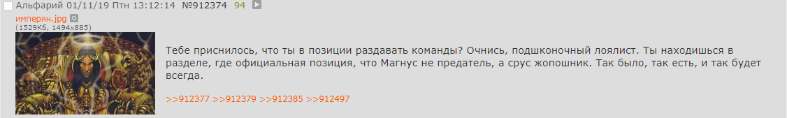 И снова заметьте - как только появился потенциальный ньюфаг - так сразу налетела жаба с пикрила. >>61375 Хренд, так ты объяснишь, почему Пертурабо и Магнус подрались из-за Антикитеры? Или опять "РРРРРЕЕЕ ЗАБАНИТЬ ЗАБАНИТЬ" как на вахаче?