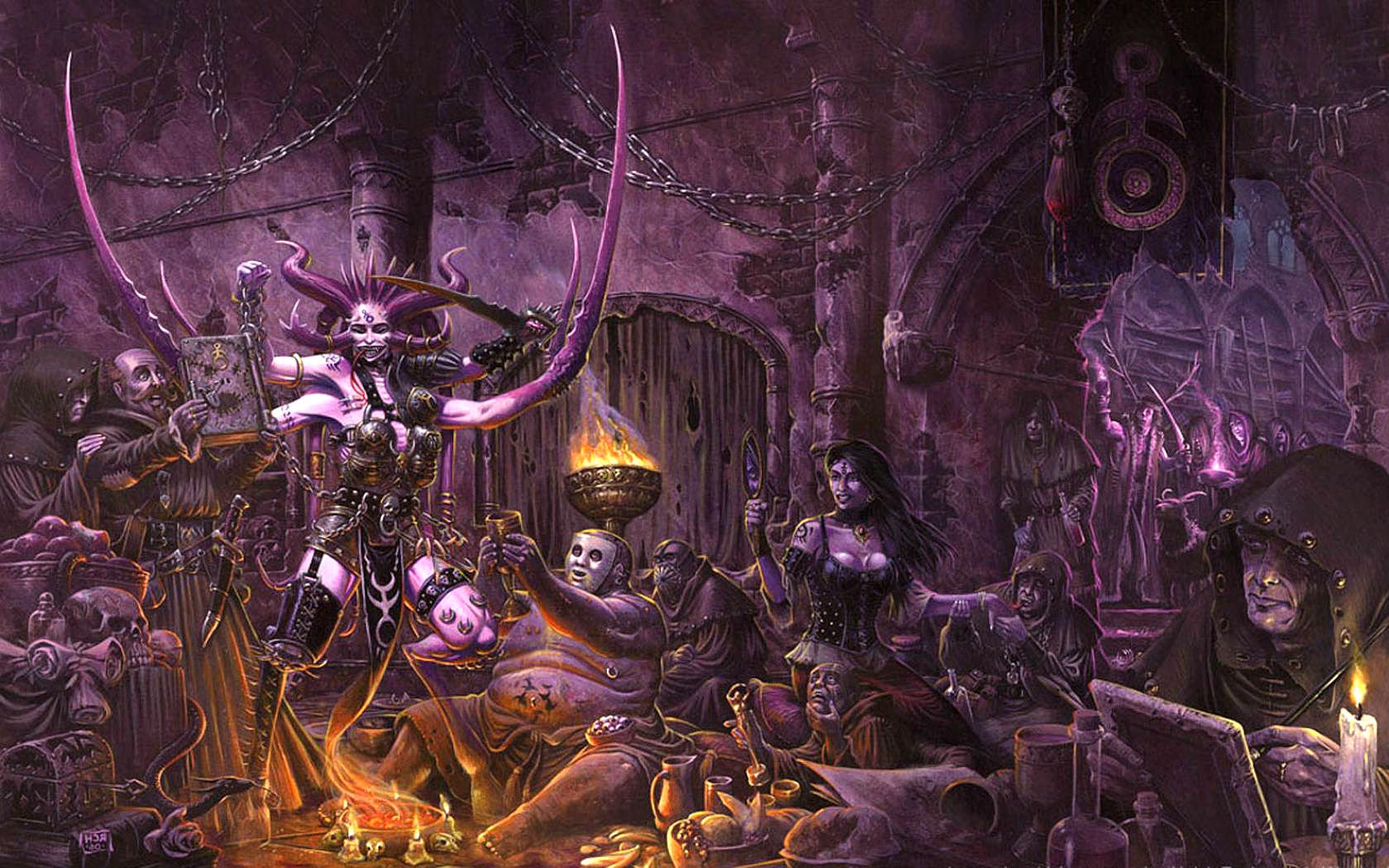 Сланешиты - ебут друг друга 24\7 Кхорниты - сражаются друг с другом 24\7 Нургалиты - нежаться в говне 24\7 Тзинчиты - дрочат глаза в фолианты и уличную магию 24\7