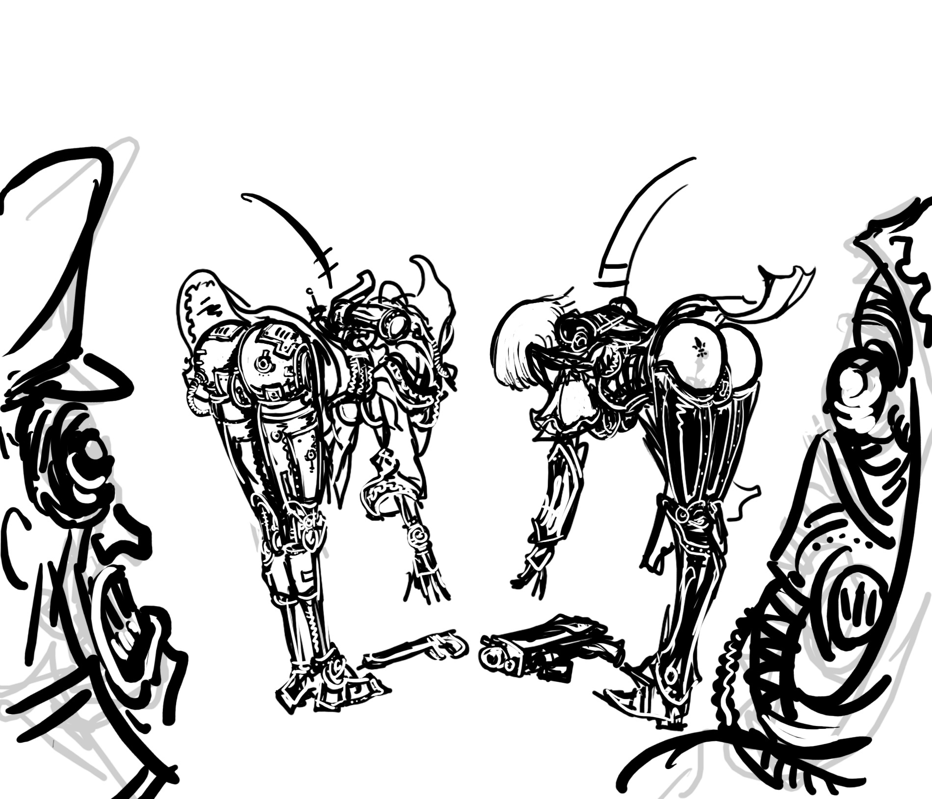 В пауках самые отчаянные, почти утратившие надежду фаталисты, это отряды добровольных смертников, даже по меркам других аспектов стремные. Если другие аспекты фокусируются на форме и алегориях - вдохновляясь смертью, огнем, ветром, мотивами защитника, затаившегося убийцы, яростного натиска и тп, пауки решают задачу истребления врага, берут самую мощную и кровавую в применении пушку(из доступных живому пехотинцу), и используют самую быструю технологию перемещения к противнику, выкидывая из уравнения выживаемость и прочие нюансы - они циничны и прямолинейны, и готовы идти на безумный риск ради главной цели. Так что ближайший аналог - суицидницы бомбистки, современные исламские, или революционерки с чемоданом нитроглицерина навещавшие всяких генерал-губернаторов, или что-то около того.