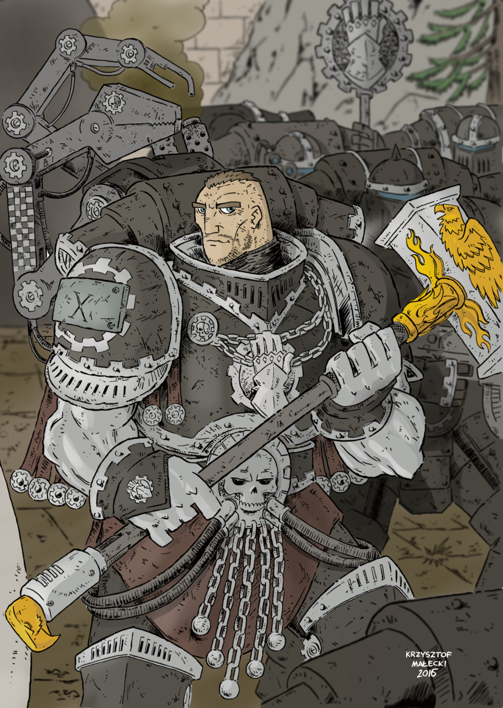 "Щель же в пространстве над Копьем расширилась. Лицо, которое там появилось, теперь больше походило на человеческое. И его Рагнар раньше видел на самых древних картинах Ордена. Это лицо принадлежало одному из злейших врагов человечества, мятежному примарху Магнусу".