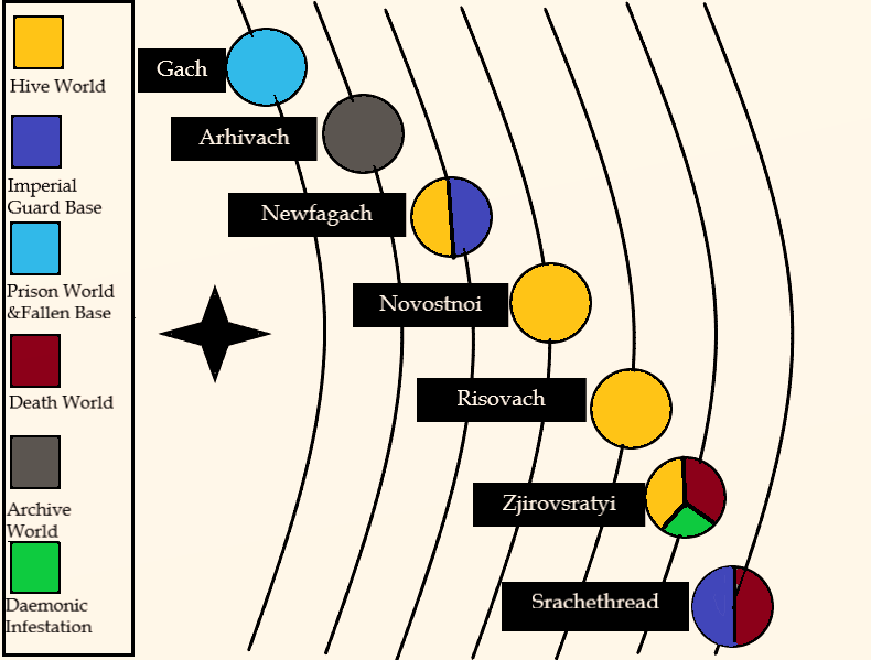 >>60380 Твой пикрил - система Вахоебус Максимус до Пяти Осад. Он вполне правильный, но на нем не указан Пояс Верности - оборонительная система, расположенная в поясе астероидов между Жировсратым и Рисовачем. Из других миров Старого Вахачиуса нужно указать кузню Конверсач, мир-улей Покрасач, правительственный центр Ша'пка, мир-маяк Баннерус, тренировочную базу Вассал, райский мир Пиктонить, базу инквизиции Темноересь, священный мир Литературус и его луну - архив Цитатус, захваченный орками мир и эльдарский крафт Кара Мелька.
