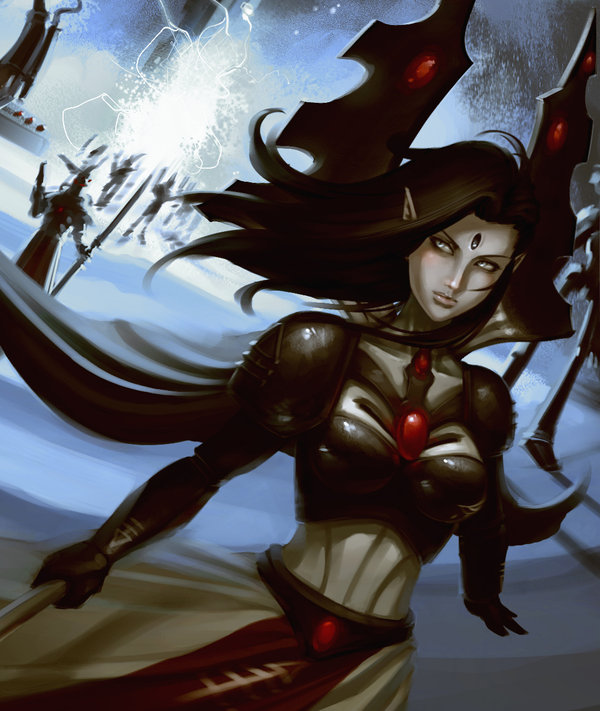 "Силы эльдар перемещались согласно приказам автархов, отступая, перегруппировываясь и снова атакуя. Красота их плана сражения отражалась в сплетении изящно закрученным узором, который пребывал в вечном движении, словно его рисовали и перерисовывали с каждым мгновением.