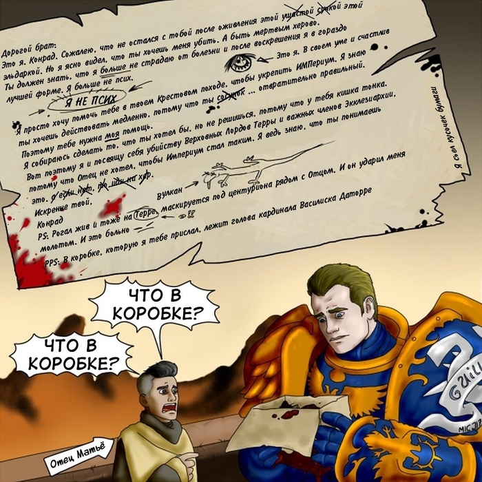 Пасту, приведенную ниже, важно учитывать при описании Осад. Одержимый демоном Тзинча Альфарий, который кем только не прикидывался. Никакого "капеллана Графоманиила с приглашением во внутренний круг" не было, это все происки Архиврага.