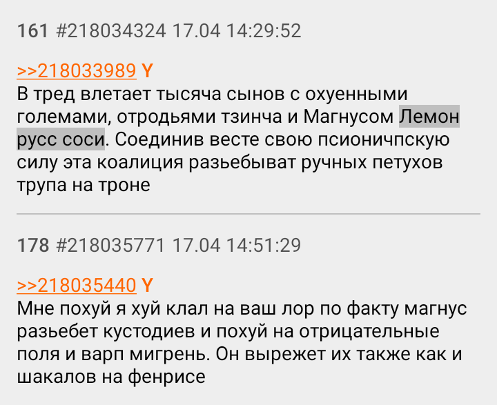 Вообще смешно это. >Которые и при живом примархе удерживались вместе только пинками, да и тогда под конец уже представляли собой бомжей. Весь этот сброд в ободранной с других броне, с кучей локальных князьков типа Вандреда и Ацербуса, которые слушают только себя и своих богов, и тут на тебе, внезапная мартисья даже без артефактов типа туалетной бумаги и бутылки в одно рыло объединяет легион. Ага, ага. Верю-верю каждому зверю, а тебе, АДБ ежу, верить погожу.