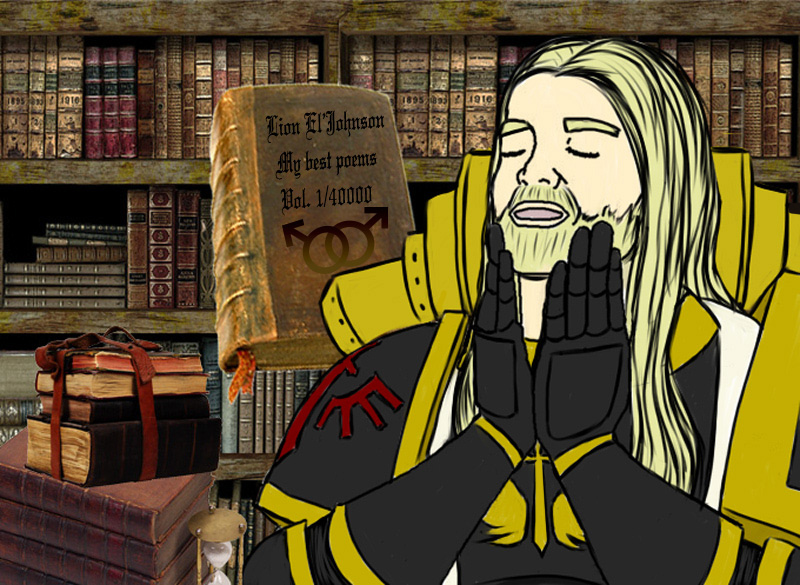 "YEAH, FUCKING LION EL', HE WAS A DECENT MAN. HE AND LEMAN HATED EACH OTHER BECAUSE LION ENJOYED BOOKS. YEAH, THAT'S IT. FIRST TIME THEY EVER MET HE WAS READING A BOOK, LEMAN WALKED IN AND SHOUTED 'HEY, I'M LOOKING FOR MY BROTHER PRIMARCH, ALL I SEE IS A BOOK-READING PUSSY'. THEN HELD HIS HAND OUT TO BE BRO-FISTED. NO ONE DID, SO HE SUCKER-PUNCHED LION TO LOOK TOUGH."