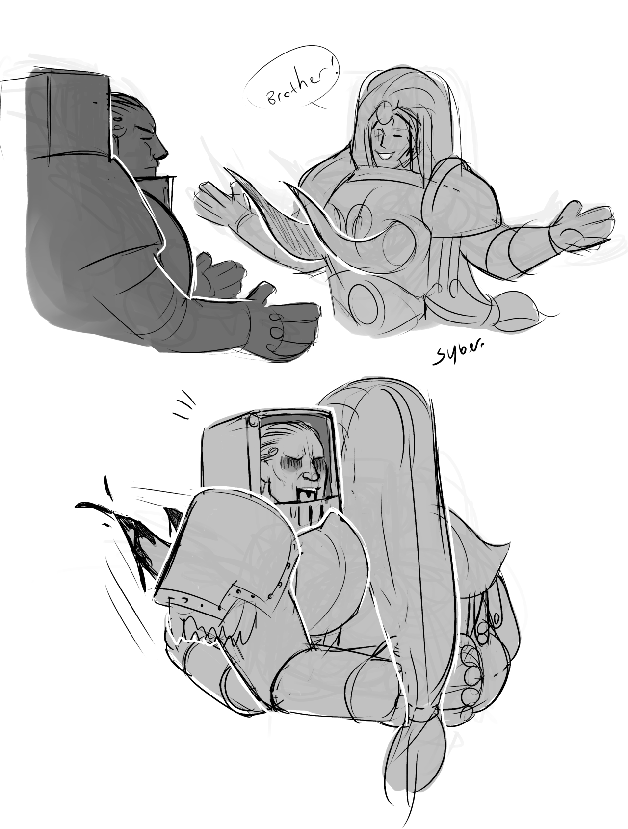 И осталось двое, котрых нипофиксить, один просто знает что будет - хуле сделать то, второй - лоботомирован и единственное лучик света (братья-гладиаторы) среди КРОВЬ КРОВЬ ГОВНО КЛАДБИЩЕ у него отобрали. Их в тандеме на самые пиздецовые угрозы - пусть делают что у них лучше всего получается. Керзу попытаться обьяснить, что хочу - как лучше и что видения - не есть факт, а только савмый хуевый из вариантов, мы на них действиями влияем. Всех адмехов и Магнуса на проблему гвоздей Ангроши, пояснить что братюнь было не спасти, а умирать ему нельзя, таких братьев в цепях - тысячи миров под пятой ксеносов и он их надежда и спасения, да это БОЛЬ но он сможет найти множество таких с которыми побратается разрывая оковы ксенорабства, у него есть цель, у него есть миссия, он таки БОРЦУН, а серьезные парни не плачут.