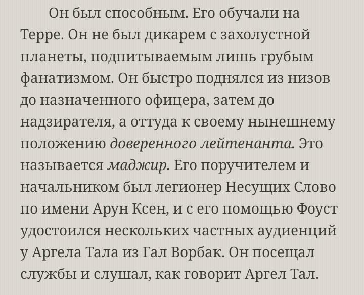 Но включив манямирок в котором я Император и могу ЛУЧШЕ то тут надо не просто делать все так же и назначать другого, надо изначально иначе вести себя. В целом охуенен Перт, если не игнорить его стремления и поощрять за копания в говне столетиями, то был бы годен - охуенен, при этом надо, чтоб он полюбому корешил с Жилей, тот поможет с тех. отчетами и логистикой, и Ферруса как зампотех. Просто блядь как берут 3-х братьев на рыбалку, вот и их так же в одни кампании и сам туда же. Сангвиний - та еще социоблядь, сам подружится с ними, как и Вулкан впрочем. Перту сказать, что мол нет ничего плохого когда Воитель слушает совет мудрый от братюни (Жиля - для инфраструктуры войны, Сангви и Вулкан для недопущения лишней крови). Если не кормить ЧСВ Егоруса будет такой Русс номер 2, будут письками мерятся между собой - здоровое такое соперничество, ну мож иногда ебало начистят, но без войны кмк.