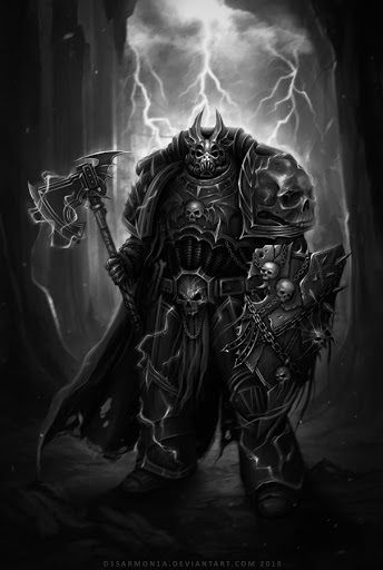Из этого нам интересен 5++ Эреба, который против каттера ему не понадобится. +1А и реролл колов на Кхарне не работают, ибо на этот раз чаржит перший капеллан. +d3 атак Кхарн тоже теряет, так как он в контакте лишь с одной моделью.