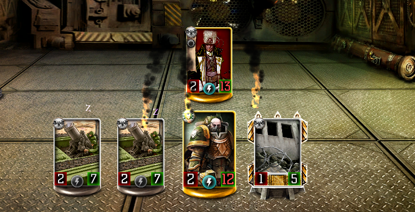 В новом бою, кстати, будет разумно предоставить Малогарсту пользоваться болт-пистолетом, так как он явно слабее Локена. Эффект знамени действует на Малогарста. Оба героя на 6 тухит генерят допатаки.