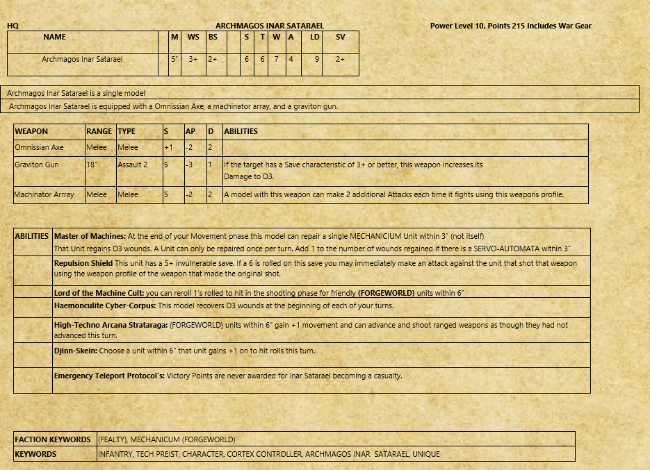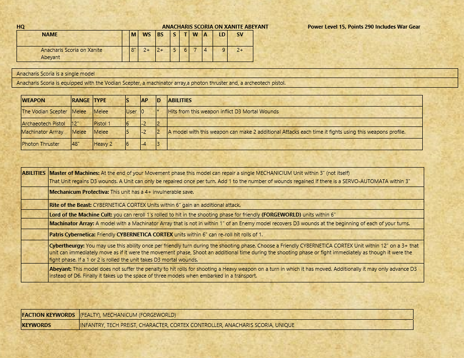>>77688 Вряд ли можно говорить о единой ФРАКЦИИ - даже лояльные адмехи представляют собой сборище феодалов, а уж даркмехи и подавно раздроблены. И раз уж заговорили про них, то платиновый вопрос: что наизобретали даркмехи? Кельбор-Хал хотел не только независимости от Империума, но и свободы исследований. Он всё это получил. Так неужели предел даркмехов - это пихать демонов в машины? Это вообще к науке и технике имеет очень косвенное отношение, это колдунство.