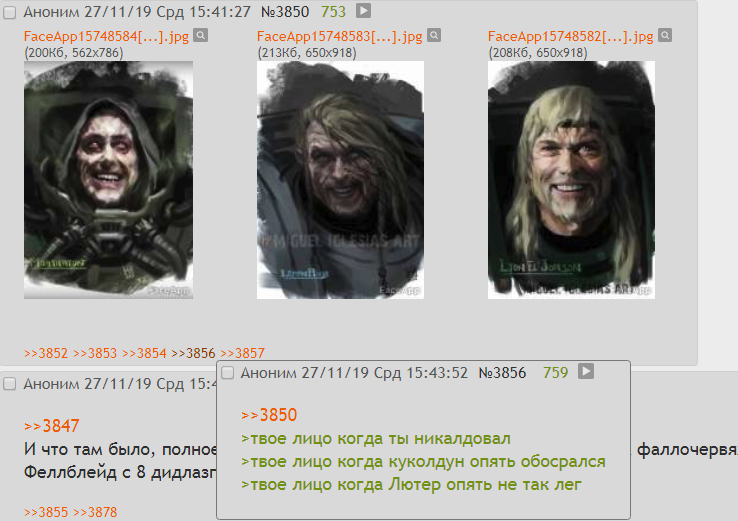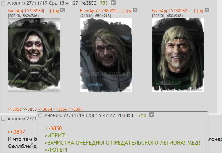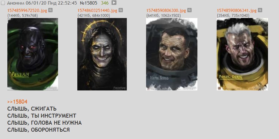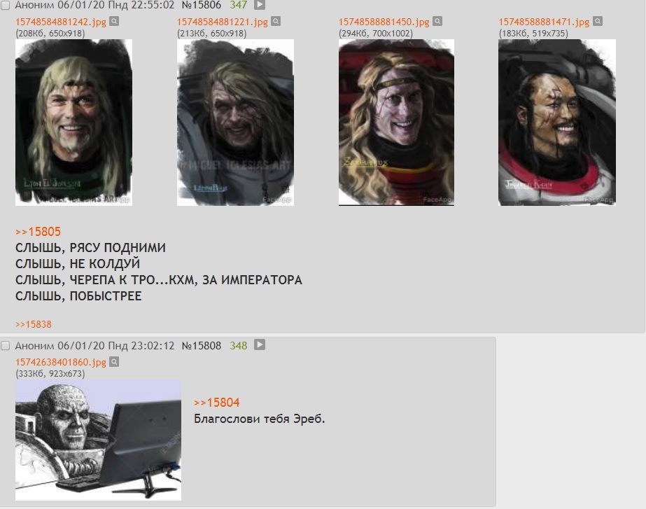 >>76025 Это ТЕМНЫЙ КЛУБОК >>76040 > примархов всрал Эээ блэт! Примархов он рисовал с персонажей фильмов, и это охуенно, наконец-то они выглядят как обычные люди.