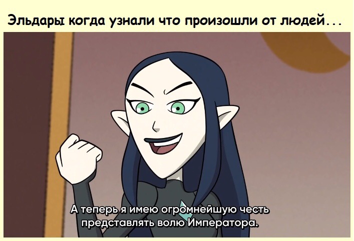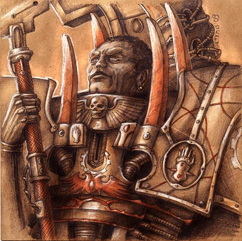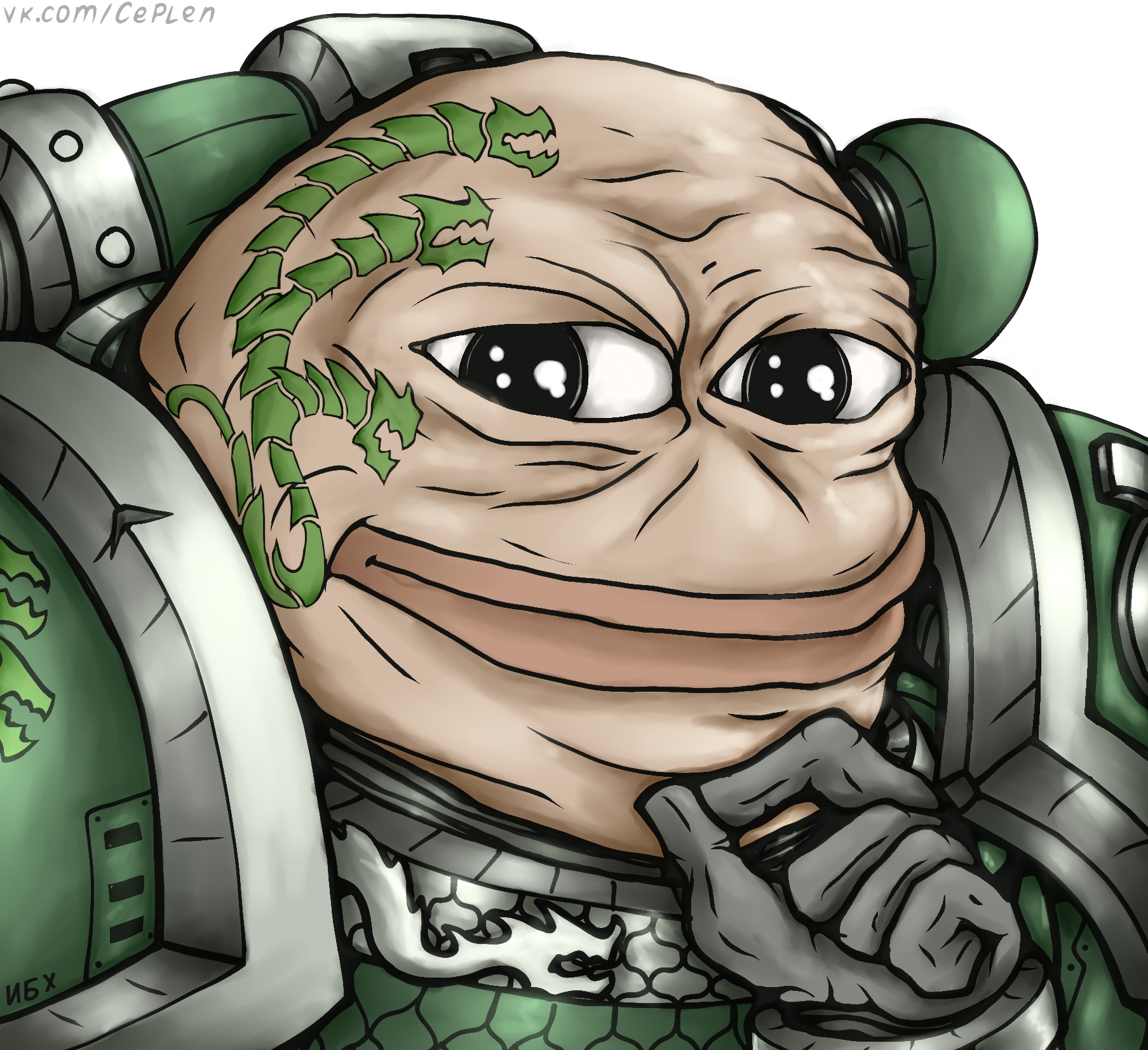 Или Жаба. Это же реально психически больной человек, психопат как минимум, если вообще не маньяк. Серьезно, что можно ожидать от примарха с таким лицом - что он обрадуется встрече с генетическими сынами и участию в ВКП во имя Человечества? Тут выражение ебла как бы говорит: НУЖНО БОЛЬШЕ ДЕЦИМАЦИЙ!