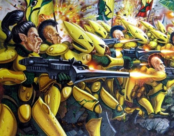>эти картинки Вархаммер первой-второй редакций. Тогда в моде был голимый трэш и кэмповая эклектика. Ваха не претендовала на что-то большее, чем глубоко нишевая игрулька для двух с половиной задротов, да и вообще это глубокая-глубокая древность. Фанаты гримдурка от нее горят не меньше, кстати, потому что КАК ЖЕ ТАК ГОМОНАМЕКИ В РОМАНЕ ПРО СМ! КАК ЖЕ ТАК СМ НЕ ОЛОЛО БАИВЫЕ МОНАХИ, А ЛЮДИ! КАК ЖЕ ТАК ЭЛЬДАРЫ С ГРЕБНЯМИ ААААААААРРРРРРРРРРЕЕЕЕЕЕ!!! Гримдурк со всем из него вытекающим говном начался с трешки. И Бланше, как бы ты него не дрочил, действительно взрастил это уебищное направление, которое ГВ начало фиксить только сейчас. Вообще же за экскурс спасибо, надо будет перенести в пастотред вместе с картиночками.
