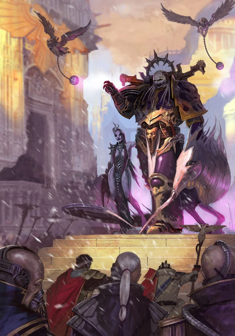 Ты блядь вообще следишь за бэком? Там сейчас Магнус и ТС собираются осуществить психическое пробуждение человечества на возрожденном Просперо, а крысы из Серых рыцарей и томных предавателей хотят ему помешать.