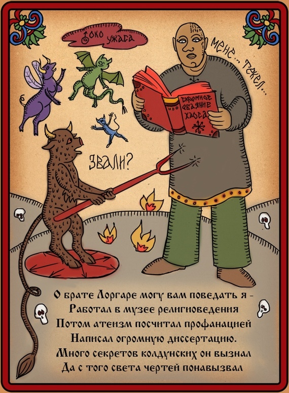 "До того как я облачился в черное, когда мы с Ариманом еще являлись подлинными братьями, а не просто были связаны кровью, я посещал его лекции о происхождении нашего вида и вселенной — той, что мы объявили своей собственностью." Ариман у нас еще и преподом подрабатывал