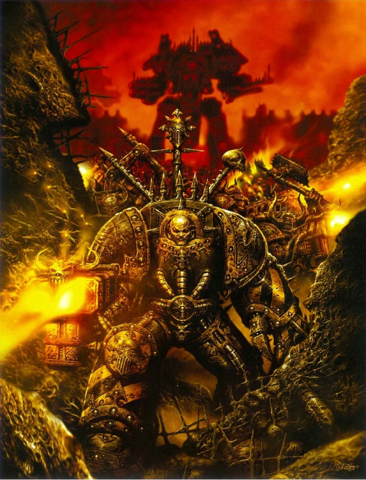 >>93263 Феррус Манус: Кхорн - ничего не изменится, получится Ангрон, только с мордой кирпичом. ЖР вставляют Гвозди и опять же, нихуя не меняется - ДИ, как более изящные фехтовальщики, вырезают бугуртящих железяк на И-5. Тзинч - Горгон садится на таинственный люминесцентный уд и превращается в железного варп-кузнеца. Рубрики нет, ЖР долго и счастливо живут с демонэнджинами. Ценности никто не ест (плоть не нужна). Нургл - заражившись коррозией, Феррус не будет очень переживать и забьёт хуй на Дедушку. ЖР станут ржавыми гнилушками, но под коростой всё так же можно будет рассмотреть "Плоть слаба".