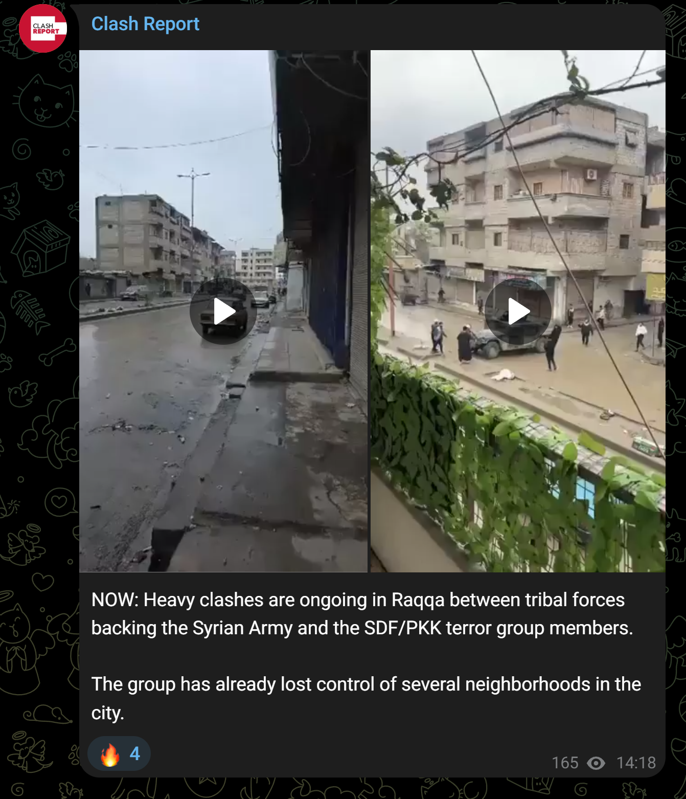Пока что все идет по сценарию декабря 2024, с разницей лишь в скорости событий. Сирийские силы уверено продвигаются (за 2 дня, взяли уже больше половины Сувейды) Друзы как в свое время армия Асада, откупают, сдавая населенные пункты один за другим (разве что не так быстро). А Израиль, как в свое время ВКС РФ, пытается авиаударами затормозить Сирийское наступление. При сохранение такой ситуации, падение Друзов, лишь вопрос времени.
